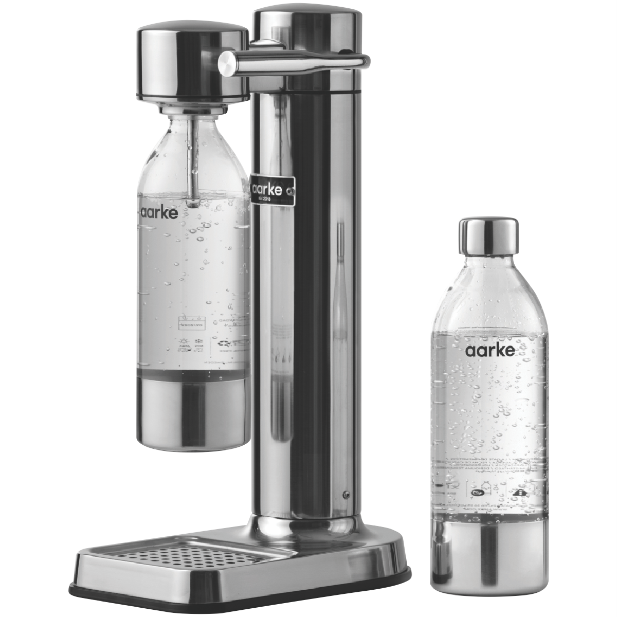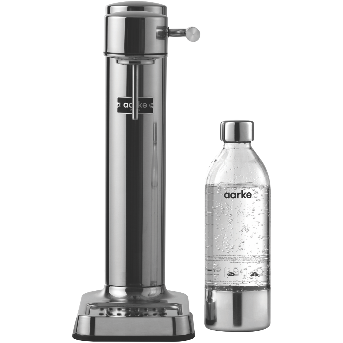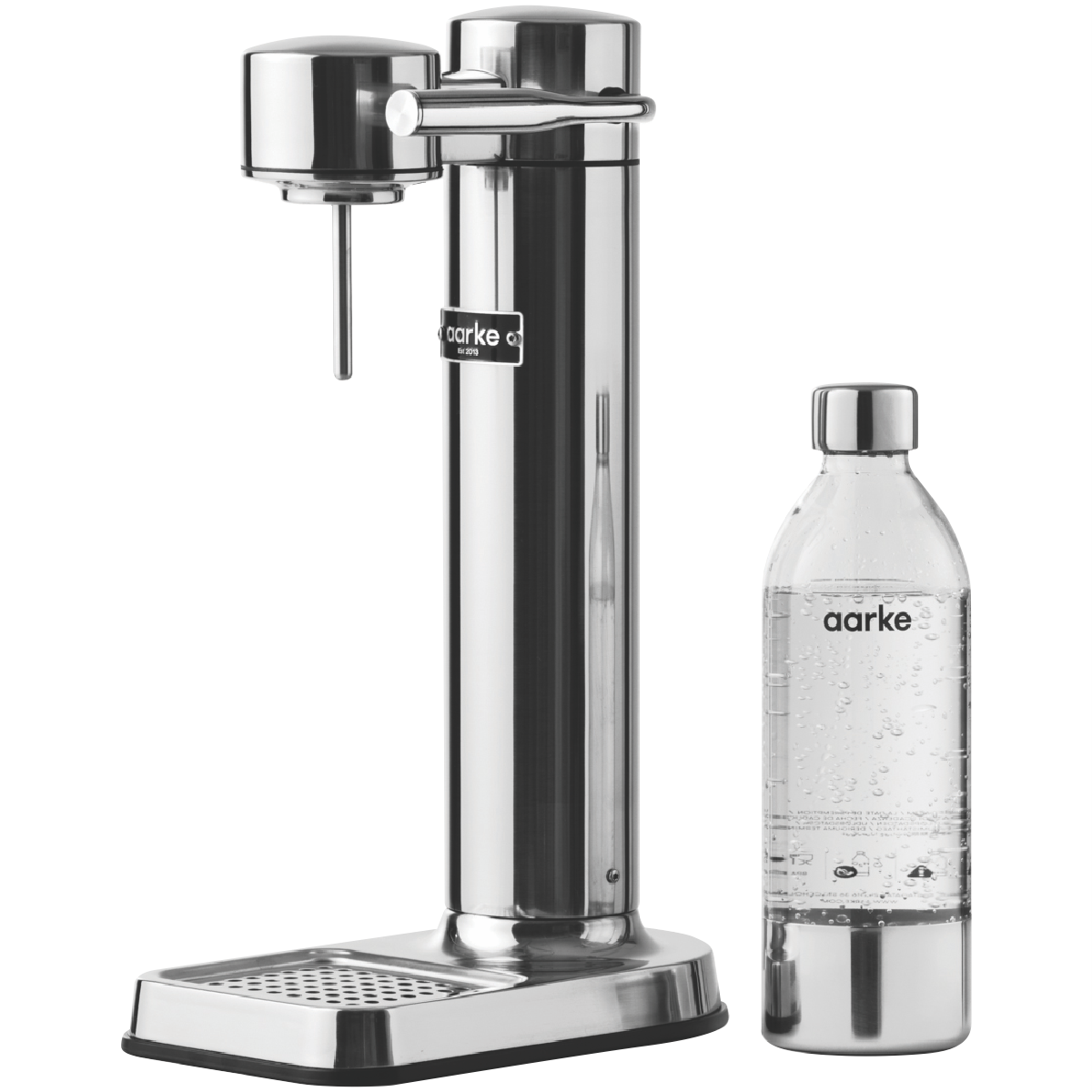 Transform ordinary water into sparkling soda with the sleek stainless steel aarke Carbonator 3. This cordless soda maker lets you make bubbly water at home without electricity or batteries. Simply fill the included BPA-free PET bottle with water attach to the CNC machined nozzle and press the lever to carbonate water in seconds. The smooth controlled spray creates perfect carbonation every time. With a compact minimalist design the Carbonator 3 adds modern style to any kitchen. The stainless steel construction is durable yet lightweight at just 1.45kg making it easy to use and store. Carbonating water eliminates the need for sugary sodas providing a refreshing fizzy drink without artificial flavors or sweeteners. The aarke Carbonator 3 comes with a PET bottle drip tray cover and cleaning cloth. Enjoy sparkling water on demand with this innovative soda maker. The manufacturer's part number for this product is AK-A1017. Check out the aarke Carbonator 3 today for fresh homemade soda water.