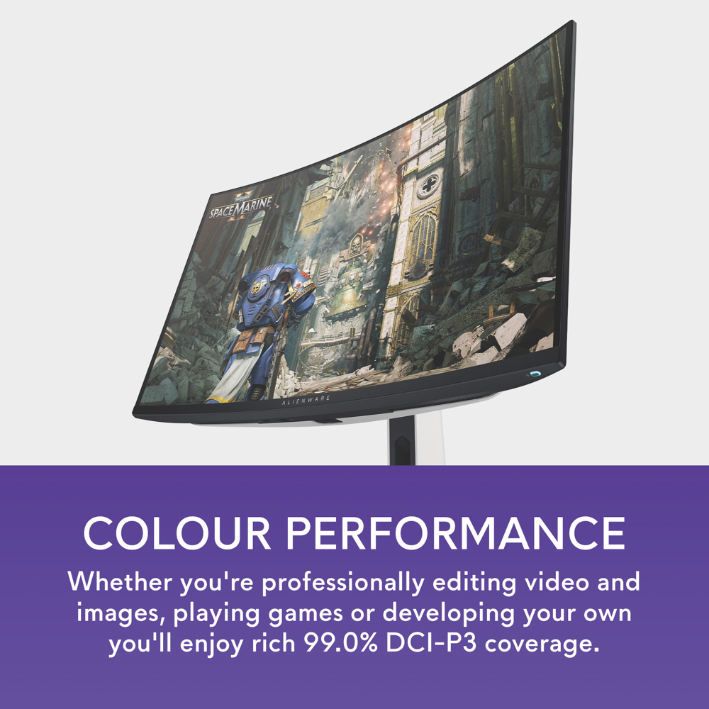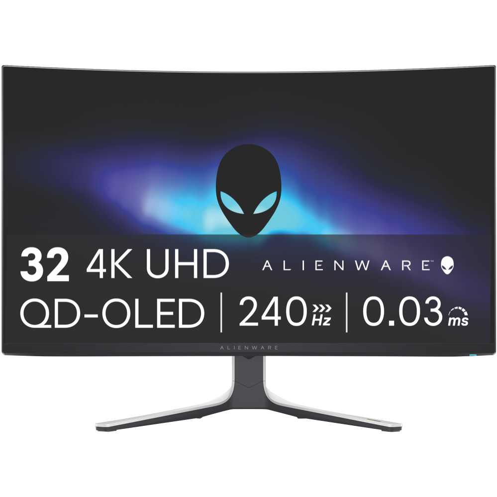 Experience gaming like never before with this Alienware 31.6 4K Curved Gaming Monitor. The QD OLED screen delivers stunning visuals with a 3480 x 2160 resolution and incredible 1000000:1 contrast ratio so you'll see every detail in both bright and dark scenes. Games run incredibly smooth thanks to the 240Hz refresh rate and lightning-fast 0.03ms response time. It's compatible with NVIDIA G-SYNC and VESA AdaptiveSync to eliminate screen tearing while Dolby Vision brings your games to life with enhanced color and brightness. The monitor comes with plenty of connectivity options including HDMI 2.1 DisplayPort USB-C and multiple USB ports. Everything you need is in the box - cables stand and documentation - plus it's backed by a 3-year warranty. The AW3225QF is the perfect centerpiece for your gaming setup.