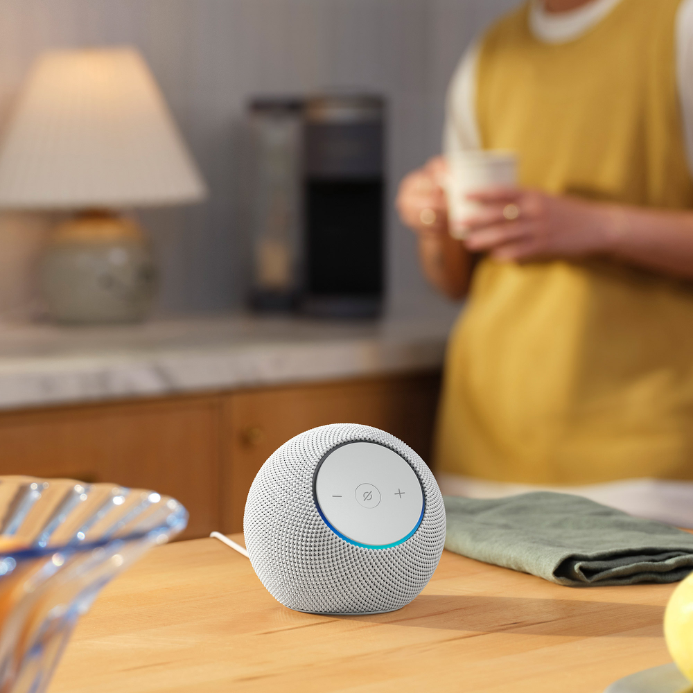 Experience premium sound with the Echo Dot Max in Glacier White featuring a 0.8 tweeter and 2.5 woofer that delivers lossless high-definition audio with automatic room adaptation. Control your smart home through Amazon Alexa voice commands or the Alexa app connecting seamlessly via Wi-Fi 6E or Bluetooth 5.3. The built-in sensors including temperature light and motion detection make this speaker incredibly responsive to your environment. It works with both Matter and Thread compatible devices making it versatile for your smart home setup. Comes with a power adaptor and quick start guide backed by a 1-year warranty. B0DKLWZ95C.