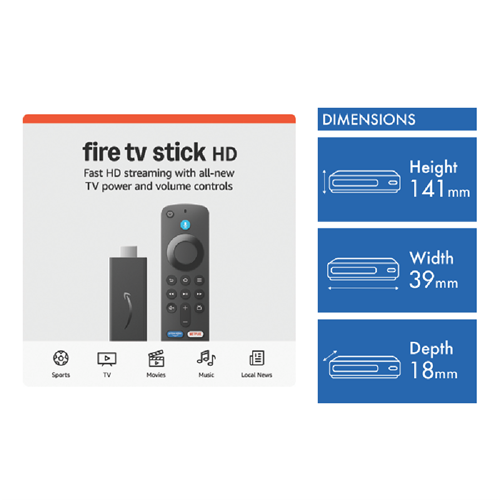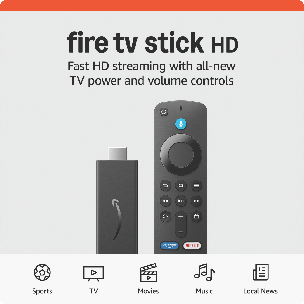 Want to stream your favorite shows and movies in HD? The Amazon Fire TV Stick HD has you covered. This handy little device plugs right into your TV's HDMI port giving you access to all the top streaming services. The included Alexa Voice Remote makes it a breeze to find what you want to watch just press a button and ask Alexa. Plus the compact design means it stays hidden behind your TV. You'll get the Fire TV Stick HD an HDMI extender the Alexa Voice Remote with batteries a power adapter and a power cable. And it's backed by a 1-year manufacturer's warranty for peace of mind. Model B0CQMZ24LR.