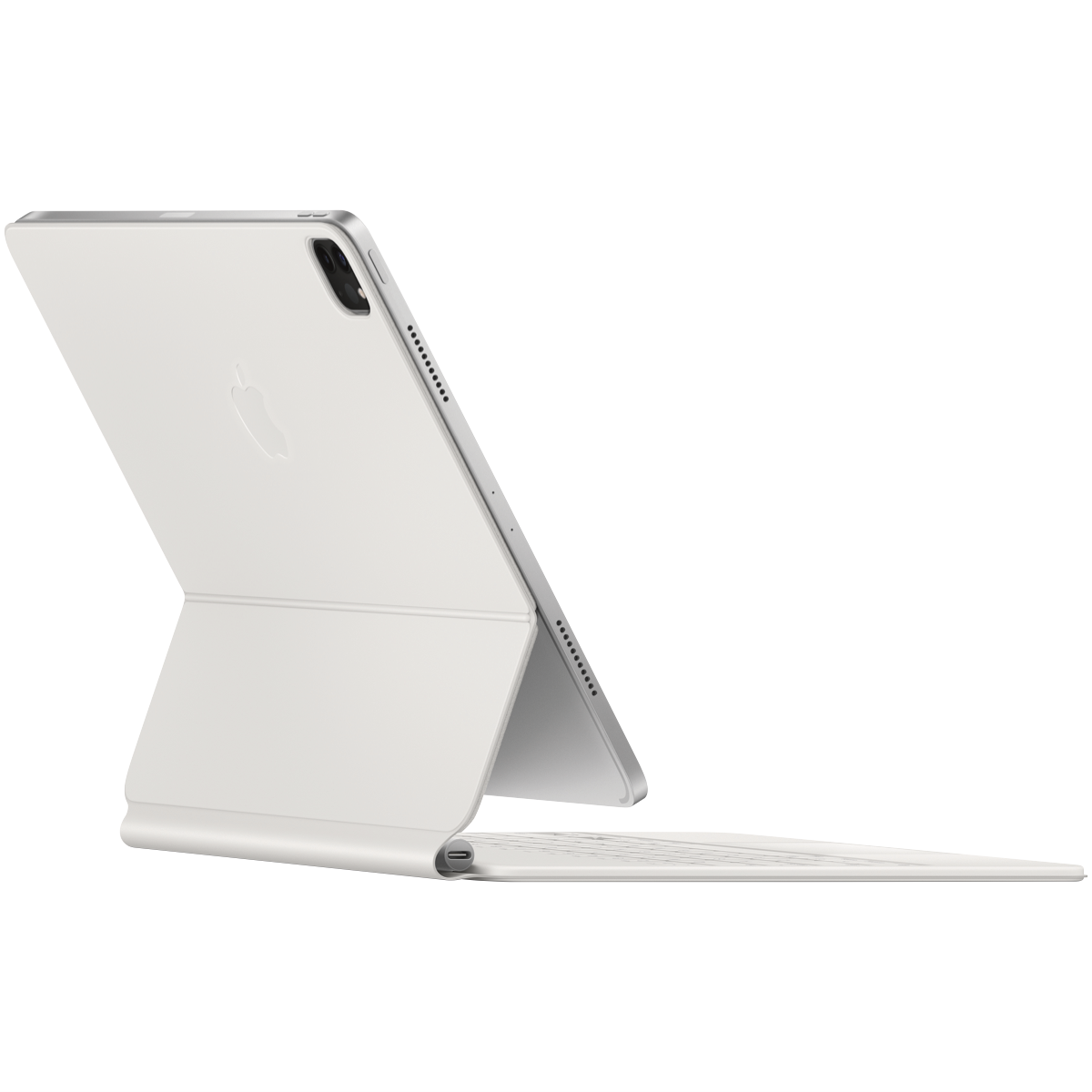 The Magic Keyboard is an amazing companion for iPad Pro 12.9-inch. It features an incredible typing experience a trackpad that opens up new ways to work with iPadOS a USB C port for pass-through charging and front and back protection. The Magic Keyboard has a floating cantilevered design allowing you to attach iPad Pro magnetically and smoothly adjust it to the perfect viewing angle for you.