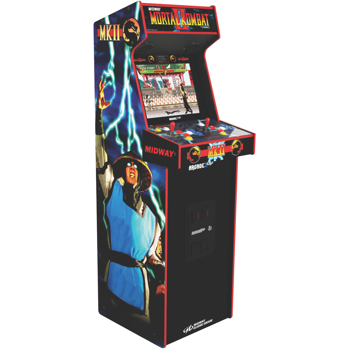 Ready to bring the classic arcade experience right into your home? The Arcade1Up Mortal Kombat Deluxe Edition Arcade Machine (MKB-A-303711) is your ticket to gaming nostalgia. This authentic arcade cabinet packs all the excitement of the original Mortal Kombat trilogy into a stylish space-saving design that fits perfectly in your game room or man cave. With its vibrant graphics responsive controls and iconic sound effects you'll feel like you're back at the arcade battling it out with your friends. Plus the durable construction and 1-year manufacturer's warranty ensure you'll be enjoying this retro gaming gem for years to come. Why settle for boring home entertainment when you can have the thrill of classic Mortal Kombat at your fingertips?