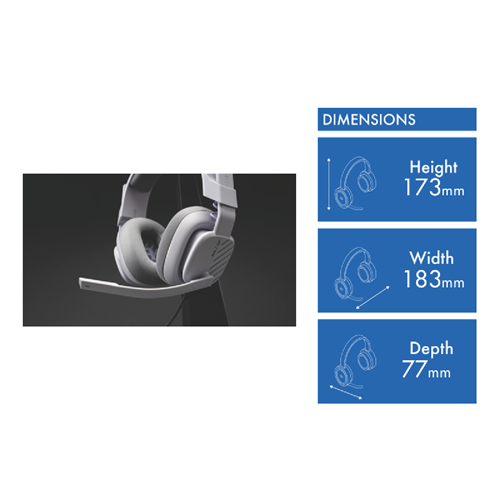 Transport yourself to a galaxy far far away with the ASTRO A10 Star Killer Base PC Headset in cool grey. This wired cross-compatible gaming headset connects to your PC Xbox Series X/S and PS5 so you can game across platforms in superior audio quality. With a lightweight yet durable design the A10 headset features 40mm speakers to deliver clear game sound and chat audio across a wide 20Hz to 20000Hz frequency range. The noise-cancelling microphone ensures your commands are heard clearly by teammates allowing for seamless communication. At just 246g the A10 headset is comfortable to wear for extended gaming sessions. With an included 1.3m PC splitter cable and 1.2m volume cable you have everything you need to start gaming right out of the box. The manufacturer's part number for this product is 939-002072. Level up your cross-platform gameplay with the ASTRO A10 Star Killer Base headset today.