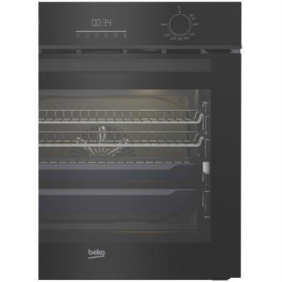 Create delicious meals with the multifunction cooking convenience of this sleek black glass and dark stainless steel Beko 60cm Multifunction Aeroperfect Oven BBO6851MDX with touch controls for seamless integration. Beko's Aeroperfect Technology allows you to bake perfect cupcakes roast a delicious Sunday dinner or use the grill to make a hearty but healthy breakfast by the uniform hot air distribution throughout the oven; minimising temperature fluctuation to ensure even and precise cooking every time. This Beko oven offers cooking flexibility by combining a fan and conventional oven and a host of different functions to suit any dish. It has a 72-litre usable capacity for cooking more food at once. Plus catalytic back and side walls makes cleaning quick and easy cleverly absorbing cooking grease and reducing food odours without the need for harsh cleaning chemicals.