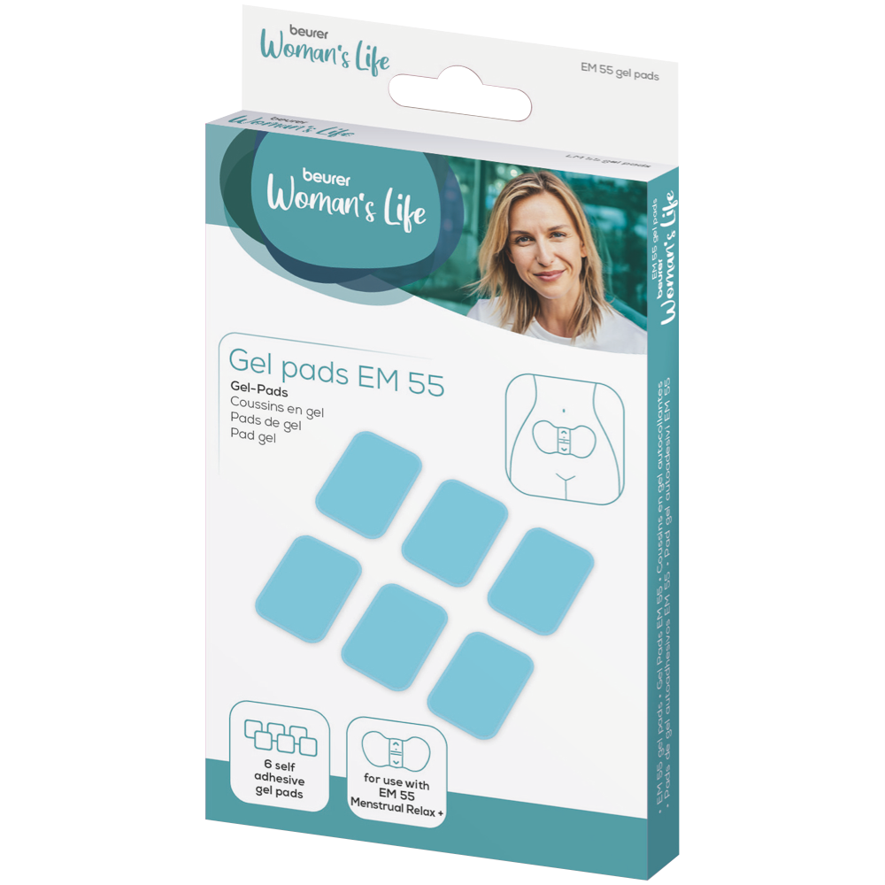 The gel pads are compatible with the EM 55 Menstrual Relax+. 6 self-adhesive pads are included.