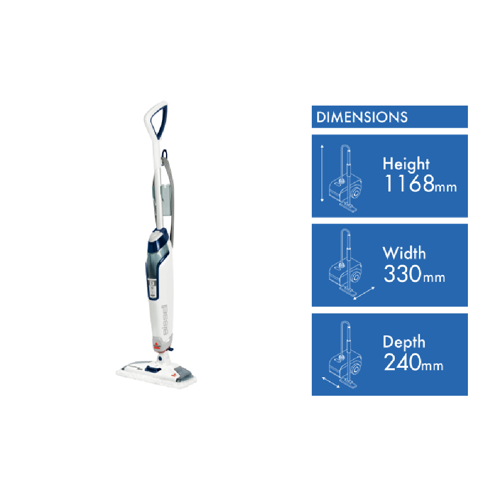 The Bissell PowerFresh Deluxe steam mop is the perfect cleaning solution for sealed hard floors. With a large 561ml water tank capacity this lightweight 2.81kg steam mop makes quick work of cleaning and sanitizing your floors. The extra-long 7.62m power cord allows you to maneuver easily around furniture and reach into corners and edges. Simply fill the tank plug it in and get cleaning in minutes. The PowerFresh Deluxe features a unique steam-on-demand trigger that allows you to control the amount of steam released. This helps conserve energy and allows you to customize the steam output for sealed hard floors. The triangular mop head easily removes stuck-on messes while the flip-down easy scrubber gives extra scrubbing power when needed. Enjoy sparkling clean floors without the use of harsh chemicals. This steam mop's natural steam cleaning kills 99.9% of germs and bacteria leaving your floors clean and sanitized. With a 2 year warranty you can purchase with confidence. The manufacturer's part number for this product is 1979F. Bring the power of steam cleaning into your home with the Bissell PowerFresh Deluxe today.