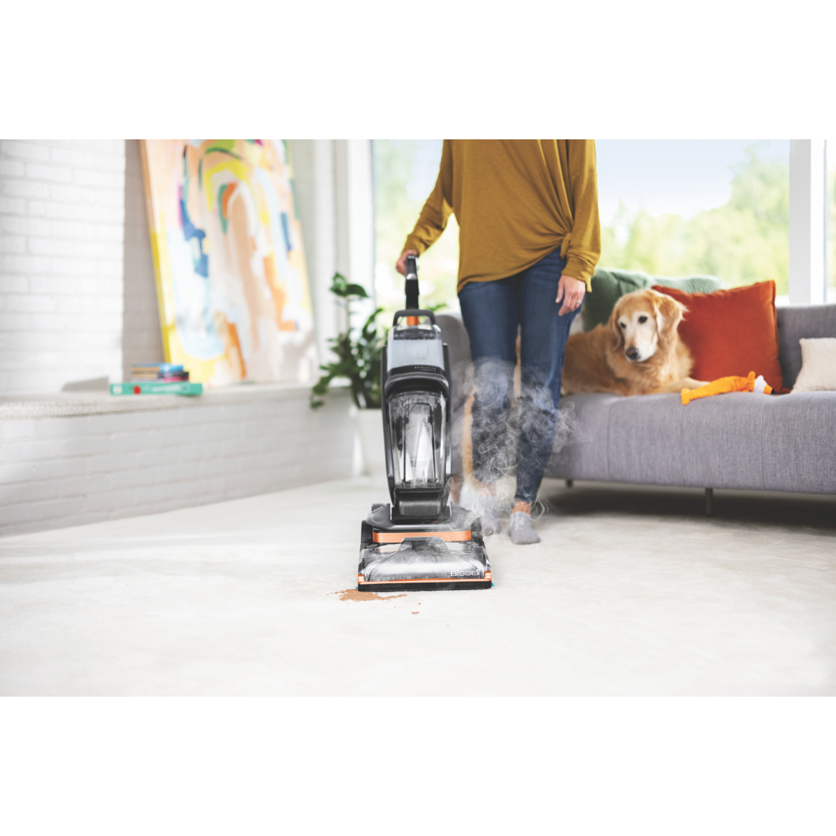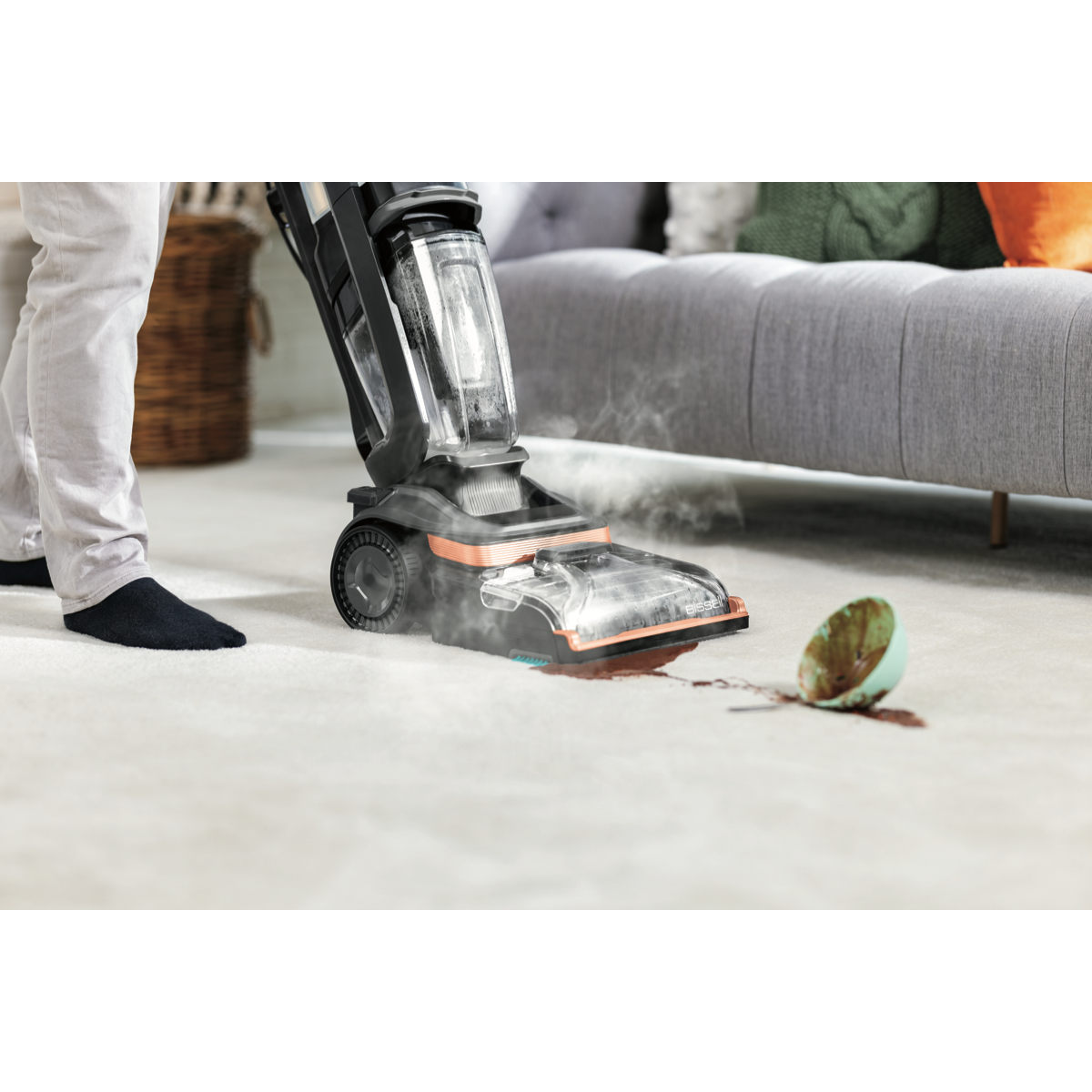 Tackle tough stains and revitalize carpets with the powerful Bissell Revolution HydroSteam Carpet Cleaner. This carpet cleaning machine features a large 3.7L water tank capacity and 7m power cord that allow you to clean large areas without stopping. Weighing 10.21kg the Revolution HydroSteam is equipped with specialized tools like the 2-in-1 Pet Upholstery Tool and 8cm Tough Stain Tool to lift dirt and stains from carpets and upholstery. The easy-to-use fingertip controls provide a customized clean while the innovative EZ Clean Brush Roll Cover makes maintenance quick and hassle-free. With this carpet cleaner you'll enjoy impressive results thanks to the superior suction that lifts and removes embedded dirt and stains. Sample sizes of Wash and Protect Pro and OXY Boost Formulas are included to help tackle set-in stains. For optimal convenience the Revolution HydroSteam includes a convenient 2.1m hose and rinse and storage tray. Backed by a 2 year manufacturer's warranty this carpet cleaner delivers a deep clean you can trust while refreshing carpets in your home. The manufacturer's part number for this product is 3670F. Check out the Bissell Revolution HydroSteam today for cleaner carpets and upholstery. Disclaimers: (1) Reference instructions in user guide. Tested on new carpet with protectant. Results may vary (2)Steam through foot of the machine only(3) Cleaning results based on ASTM F2828 using BISSELLĀ® Wash & Protect Pro Stain & Odour formula in SteamWash MAX Clean Mode versus Tineco Carpet One Pro using Deodorizing & Cleaning solution.(4)We recommend checking the care label and/or manufacturer's cleaning instructions for carpets rugs upholstery and car interiors prior to using. Not recommended for use on pure wool loop pile viscose jute silk leather or natural suede.
