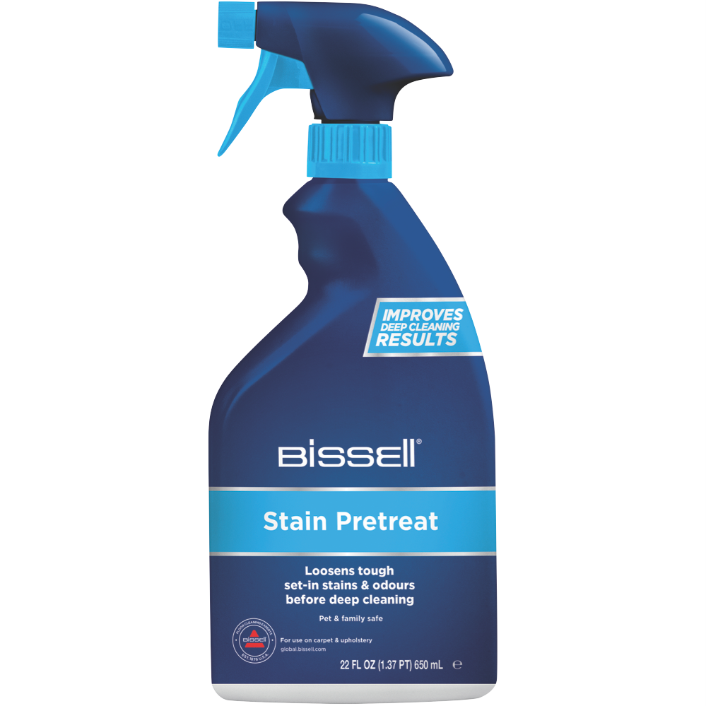 Bissell Tough Stain Pretreat penetrates and loosens tough stains and odours for cleaner carpets. If you want to clean your carpets or spot clean effectively it s an important first step. Use Bissell Tough Stain Pretreat before deep cleaning to help remove spots and stains including gravy coffee make-up and ground-in dirt. Bissell Tough Stain Pretreat is a powerful everyday cleaner.
