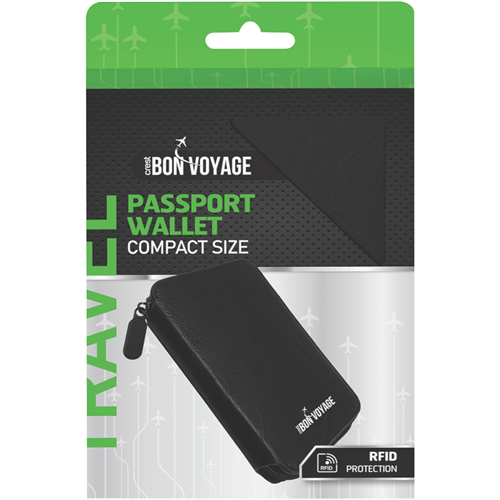 With sleek lines and a practical design the Bon Voyage Travel Wallet keeps you organized on your adventures. Crafted from durable PU leather this wallet offers plenty of storage for passports cards cash and more. The two passport pockets and multiple card slots provide dedicated spaces to stow travel essentials while the RFID blocking technology helps keep your personal data safe from illegal scanning. Whether you're jetting off for business or pleasure this travel wallet stores everything you need in one secure place. Tuck it in your carry-on or slip it in your pocket to keep valuables close at hand. At the end of the day the Bon Voyage Travel Wallet simplifies organization so you can focus on creating memories. Don't leave home without this travel essential. Backed by a 1 year warranty from the manufacturer.