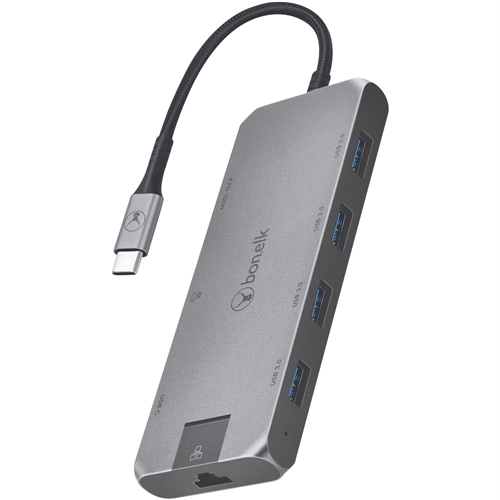 Embrace simplicity and portability with the Bonelk Long-Life USB-C to 8in1 Multiport Hub in a sleek Space Grey finish. This versatile hub transforms your USB-C laptop into a productivity powerhouse delivering eight essential ports for effortless everyday use. Connect your accessories and peripherals without the hassle of dongles. The slim lightweight design slips easily into your bag giving you streamlined performance wherever you go. With a durable aluminium casing and Bonelk's trusted quality this hub is built to last for years to come. Experience the convenience of a USB-C hub that meets all your connectivity needs crafted for professionals and students who value productivity portability and reliability every day. Don't settle for anything less than the versatility of Bonelk's 8-in-1 USB-C hub.