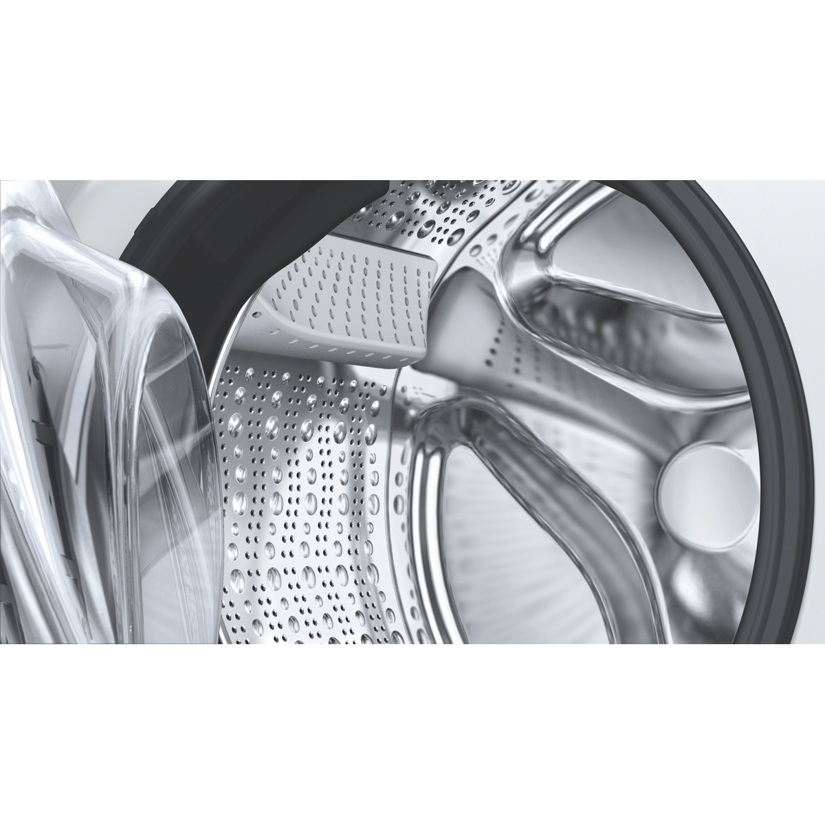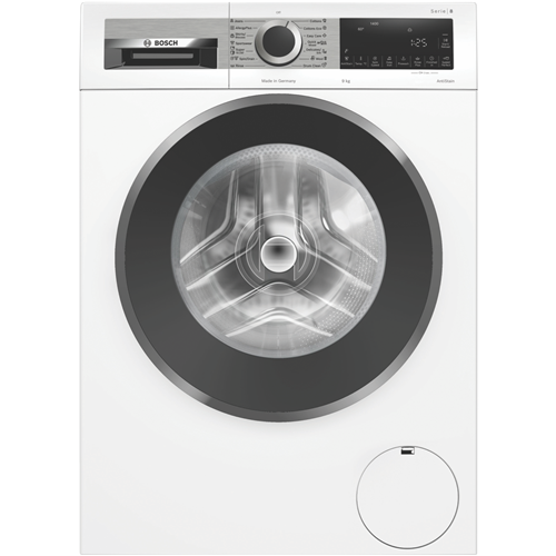 Bring sleek design and intelligent washing technology into your home with the Bosch Series 8 9kg Front Load Washer. This white freestanding washing machine not only looks great but also delivers powerful cleaning performance. With a generous 9kg load capacity you can wash more in one go saving you time. The EcoSilence drive motor is whisper-quiet yet highly efficient. Vibration is significantly reduced thanks to the AntiVibration panels and stable design. The ActiveWater system automatically adjusts water usage based on the size of each load helping you conserve water. An impressive 1400rpm max spin speed removes more moisture from clothes to cut down drying time. The AntiStain and super quick 15 minute cycles target tough stains. The self-cleaning detergent drawer prevents residue buildup. The intuitive LED display reload function and delay start provide added convenience. For peace of mind AquaStop flood protection stops water flow if a leak occurs. With a 5 star energy rating and 4.5 star water rating this Bosch washer helps reduce your utility bills. Bring home the Bosch Series 8 Front Load Washer today for an effortless laundry experience. The manufacturer's part number for this product is WGG24402AU.