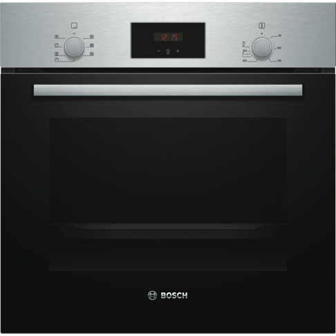 The Bosch 60cm EcoClean Direct Oven is a sleek benchtop electric oven that will revolutionize your cooking experience with its innovative features and stylish stainless steel design. This Series 2 oven comes equipped with five functions including 3D and gentle hot air grill top and bottom heating allowing you to cook everything from crispy pizzas to juicy roasts with ease. The generous 66 liter capacity provides ample room for baking multiple dishes at once while the triple-glazed door seals in heat and ensures energy efficiency. With rapid heating and cool touch doors you can get meals on the table fast without burning your fingers. The EcoClean technology's pyrolytic cleaning function breaks down food residue at high temperatures reducing the need for scrubbing. Pop-out controls drop down door and removable racks make cleaning even simpler. With intuitive control knobs a built-in timer and halogen lighting this Bosch oven provides a user-friendly cooking experience. Your inner chef will be inspired by the versatility of this multi-functional electric oven. Upgrade your kitchen with the Bosch 60cm EcoClean Direct Oven today. The manufacturer's part number for this product is HBF133BS0A.
