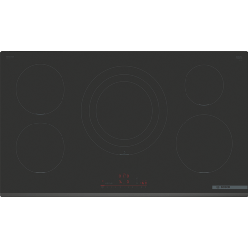 Step up your kitchen with the power and precision of the Bosch Series 6 90cm Induction Cooktop. This sleek black glass cooktop boasts 5 induction cooking zones to accommodate all your cooking needs. The touch controls with 17 power levels allow you to fine-tune heat with ease. Features like PowerBoost ReStart QuickStart and Pause give you complete command over your cooking. With automatic pan recognition this cooktop intelligently detects your cookware. The switch-off timer count-down timer and child lock provide added safety and convenience. At 918mm wide this spacious cooktop has room to cook multiple dishes at once. The durable glass surface simply wipes clean after use. With intelligent DirectSelect and automatic safety switch off Bosch brings the latest induction technology to your kitchen. Backed by Bosch's 2 year warranty this cooktop delivers advanced features you can count on for quicker easier and smarter cooking every day. The manufacturer's part number for this product is PIV931HC1E. Bring home the Bosch Series 6 90cm Induction Cooktop for high-performance cooking.