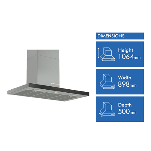 • 90cm ducted and recirculating with 3 LED lights