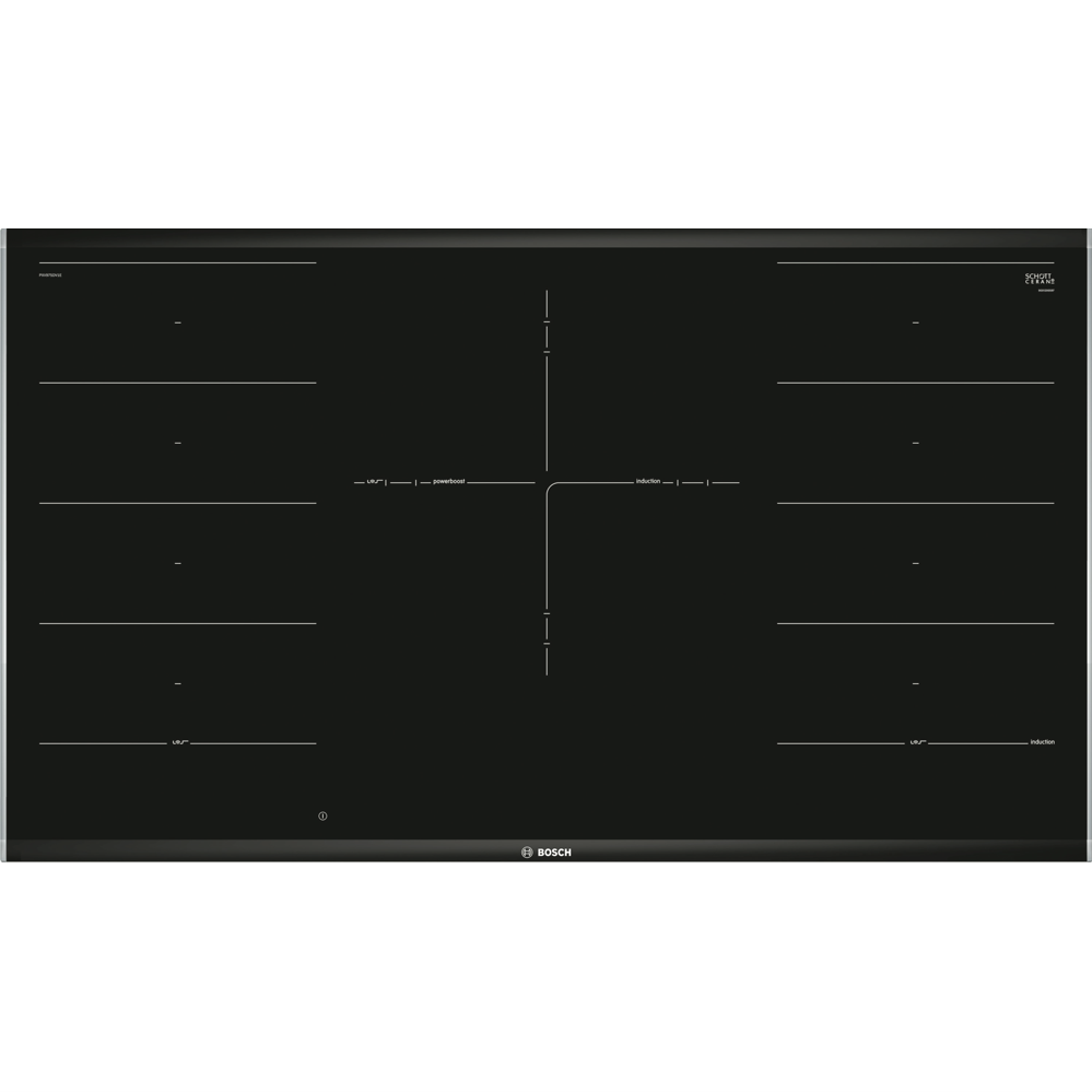 Take your kitchen to the next level with the Bosch 90cm Induction Cooktop. This sleek black cooktop features stainless steel side profiles and a beveled front to add a modern touch to your space. With 5 induction cooking zones 17 power levels and automatic pan recognition you'll have precise control to achieve perfect results every time. The intuitive touch controls power boost function and built-in timer make cooking simple and efficient. Safety features like the child lock residual heat indicators and automatic switch off give you peace of mind. With a width of 916mm height of 51mm and depth of 527mm this cooktop provides ample room for pots and pans of all sizes. Bring innovative induction technology into your home with the Bosch 90cm Induction Cooktop. With a 2 year manufacturer's warranty and installation by a licensed electrician you can count on this cooktop to deliver exceptional performance and convenience for years to come. The manufacturer's part number for this product is PXV975DV1E.