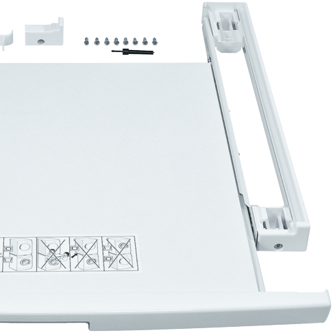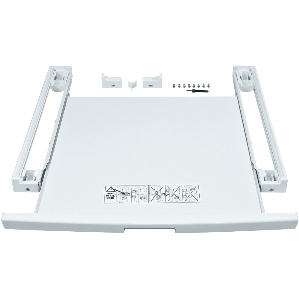This Bosch stacking kit in white enables you to safely stack your laundry appliances for a space-saving solution. With a pull out shelf for easy access and optimised storage this kit allows you to stack a washing machine and dryer vertically with ease. Designed for convenience the kit's secure stacking system gives you the flexibility to arrange your laundry the way you want. By elevating the dryer you can avoid bending down and make loading and unloading simpler. The kit also helps reduce vibrations and stabilises your appliances when stacked ensuring quieter operation. With handy storage for laundry products on its pull out shelf this stacking kit adds functionality to your laundry while maximising your floor space. For those wanting a tidy vertical laundry setup this kit offers a stable stacking system in a crisp white finish. The manufacturer's part number for this product is WTZ11400. Consider this stacking kit to create a more efficient laundry by stacking washer and dryer.