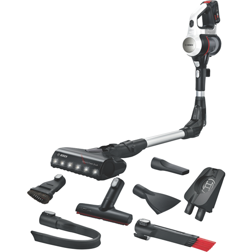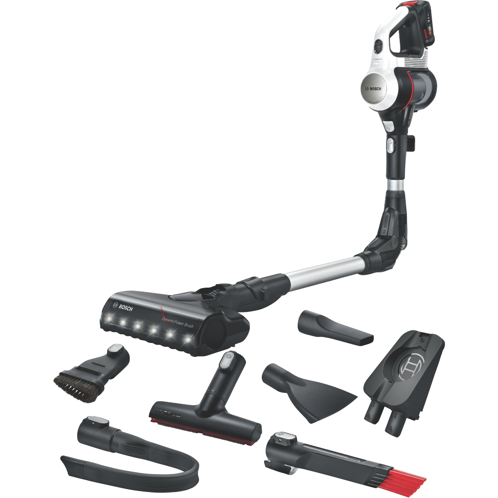 The new Unlimited 7 features an innovative 90° bendable tube for easy and ergonomic cleaning under furniture. Other convenient functions include the LED floor lights the Nozzle Foot Release for an effortless switch to overhead cleaning and the Easy Parking Clip. njoy more versatility! The convenient Flex Tube makes it possible to reach places under low furniture effortlessly the Easy Parking Clip lets you securely hold the vacuum in place during breaks and the Quick Stand allows flexible cleaning with the handheld while the nozzle and tube stand by themselves. With the Nozzle Foot Release you can detach the nozzle from the tube without bending over to easily switch to spot cleaning with the practical tube. This makes the Unlimited 7 perfect for cleaning all types of floors and surfaces as well as hard-to-reach areas.With the powerful and enduring 3.0 Ah Power For All battery from Bosch even demanding cleaning tasks can be mastered effortlessly. The lithium-ion battery is rechargeable exchangeable and protected against overheating overcharging self-discharge and memory effect. In addition the battery offers up to 33% more runtime(7) ensuring powerful performance and long runtimes.Enjoy optimal cleaning results on all floors and surfaces and even in the darkest places. With the powerful motorized brush you can achieve dust pickup of up to 99.9% . Thanks to the powerful built-in LED lights you can spot and remove dirt and dust even in hard-to-see places like behind furniture or in dark corners. So you can feel comfortable in a clean home in no time. Save time and energy thanks to the Quick Stand function. Switch easily and effortlessly from floor cleaning with the vacuum cleaner to mid-level cleaning with the handheld vacuum cleaner. While cleaning with the handheld the nozzle and tube simply stand by themselves. You don't have to put the vacuum cleaner on the floor or return it to the docking station. Afterwards you simply put the handheld back into the tube and continue cleaning the floor. Different vacuuming tasks require different modes. The vacuum cleaner provides a control interface with 3 power modes for every challenge. Turbo boosts performance for difficult tasks by providing as much performance as a corded vacuum cleaner.² The intelligent Auto mode adjusts performance and runtime depending on the floor and surface whether carpet or hard floor. And Eco provides extra-long optimal runtime for everyday cleaning tasks. Disclaimers: Dust pickup measured in Turbo mode on hard floors with crevices. Tested according to EN 60312-1:2017.(3)Terms of guarantee on https://www.bosch-home.com.au/metapages/warranty(4)Dust pickup measured in Turbo mode on hard floors with crevices. Tested according to EN 60312-1:2017.(5)Compared to our previous Unlimited Serie 6 BCS61113AU. Tested according to EN 60312-1:2017.(7)Compared to the 2.5Ah 18V Power For All battery in Eco mode without electrical nozzle from our previous Unlimited Serie 6 BCS6111AU. Tested according to EN IEC 62885-4:2020.(8)Measured in Eco mode internally based on standard EN 60312-1:2017 section 5.1 5.3.(0)Tested according to EN 60312-1:2017.