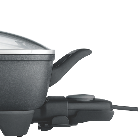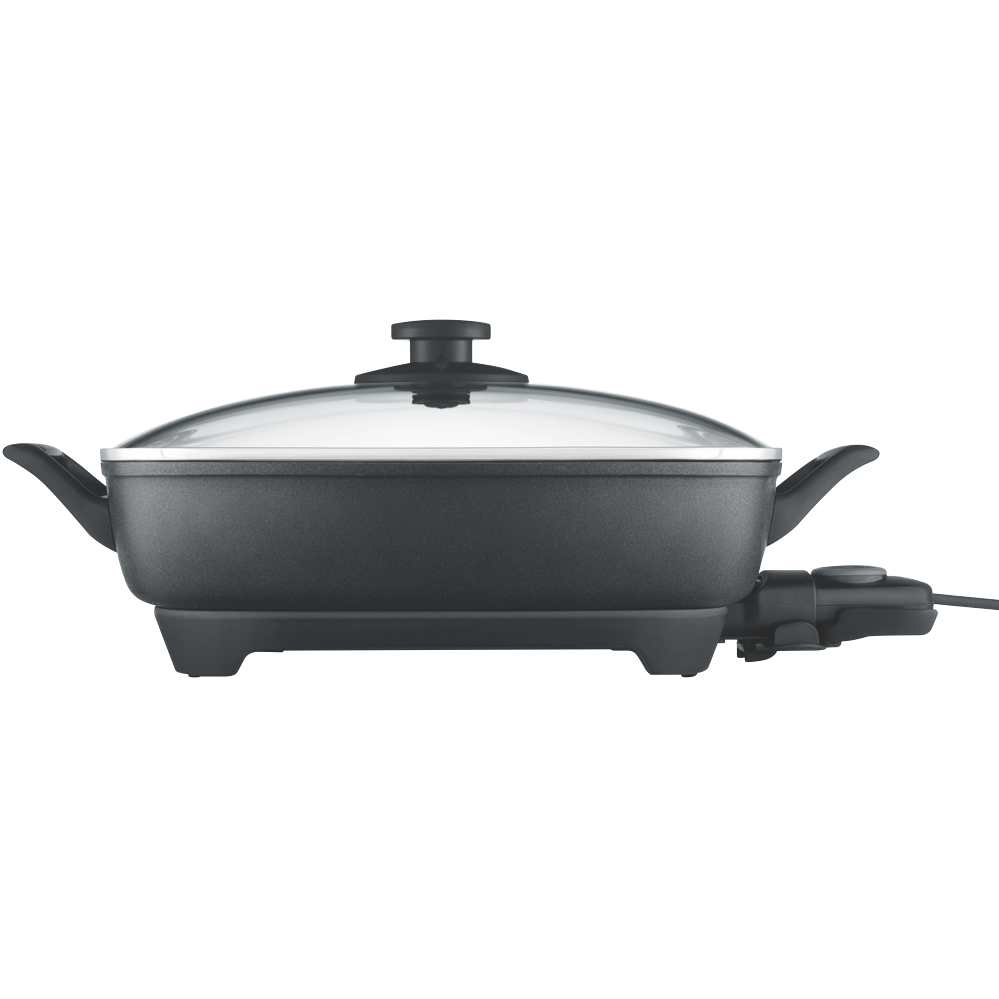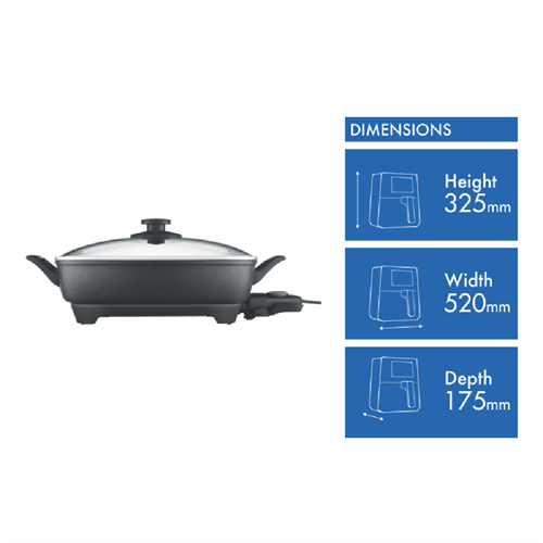• 2200 Watt aluminium element, glass lid, dishwasher safe