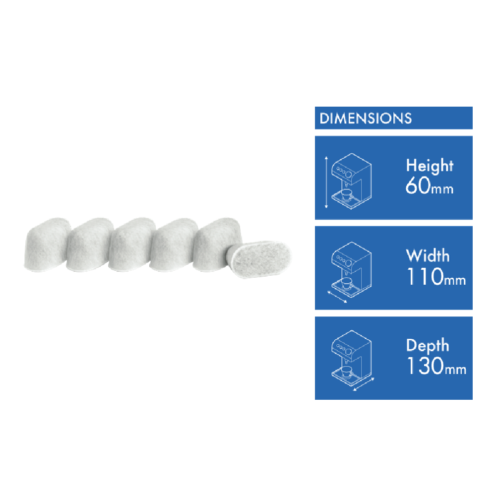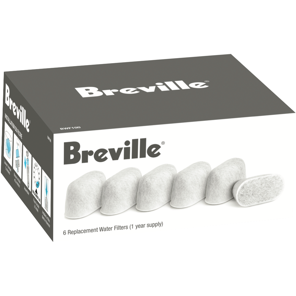 Refresh your water with the Breville Charcoal Water Filters 6 Pack. These easy-to-install filters utilize activated carbon to reduce chlorine taste and odor from tap water providing cleaner fresher drinking water straight from the tap. The compact design fits most Breville water filter systems making it simple to maintain clean water. With each filter lasting up to 60 days this convenient 6 pack helps you stay stocked up on filters. The activated carbon filtration reduces unwanted tastes and odors without removing beneficial fluoride. Enjoy water that tastes pure and clean with the Breville Charcoal Water Filters 6 Pack. The manufacturer's part number for this product is BWF100. Check out this water filter pack for your home today.