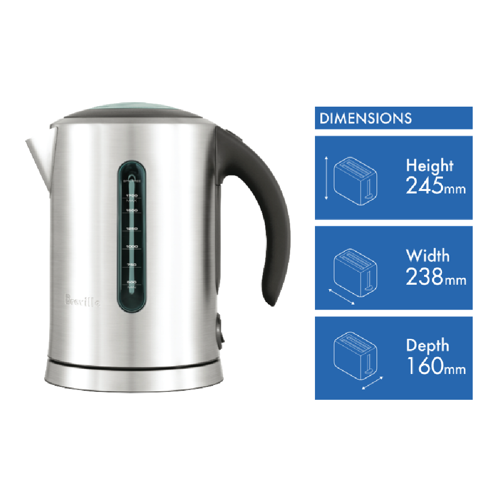 Step into the world of perfectly brewed tea and coffee with the Breville Soft Open Kettle Pro. This striking 1.7L stainless steel kettle brings sleek style and intelligent design to any kitchen counter. Dual-sided water windows provide clear visibility as you fill while the soft top lid gently releases steam to prevent splashing when pouring. With a powerful 2400W element water boils rapidly and auto shut-off kicks in once finished to prevent dry boiling accidents. A multi-directional base allows you to grab the kettle from any angle and the removable scale filter ensures purity and flavor. Illuminated power buttons let you know when it's on and off. Crafted for durability and convenience this kettle makes light work of preparing hot beverages. With thoughtful touches like cord storage to keep your countertop clutter-free it's the ultimate way to upgrade your tea and coffee routine. Let the Breville Soft Open Kettle Pro streamline your mornings and enhance your daily ritual of brewing up something warming. This kettle's manufacturer part number is BKE700BSS. Make your days brighter with a simple push of a button.