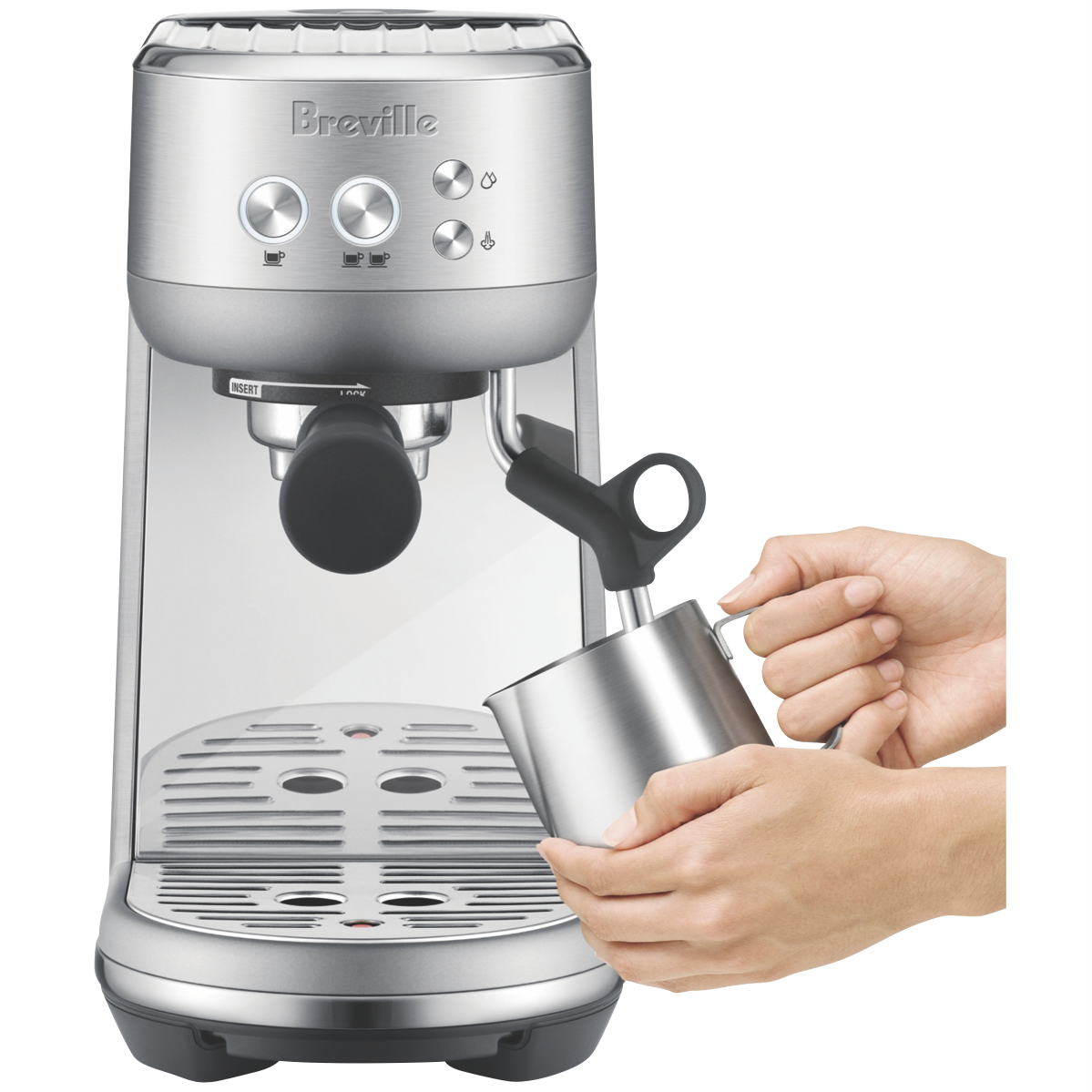 Like professional machines Breville the Bambino BES450BSS can deliver third wave specialty coffee. This is made possible by the 4 keys formula. Delivering barista quality performance using a 54mm portafilter with 19 grams of coffee for full flavour and a powerful steam wand to create microfoam required for latte art (milk jug sold separately). With a proprietary Thermojet heating system this Breville coffee machine is ready to start in just 3 seconds.