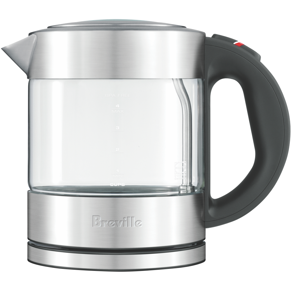 Prepare delicious beverages with the Breville THE COMPACT KETTLE PURE. This clear 1L kettle crafted from durable stain-resistant thermal shock resistant glass allows you to monitor water levels while heating. The soft tip lid provides a smooth drip-free pour and the 360° multi-directional cordless base enables convenient placement. With rapid boil technology this kettle boils water faster than a microwave. The auto shut-off and boil dry protection give you peace of mind and the wrap-around cord storage keeps your countertop clutter-free. Whether you're preparing tea coffee instant meals or baby formula this Breville kettle makes it easy. The manufacturer's part number for this product is BKE395. Shop now and enjoy hot beverages with ease.
