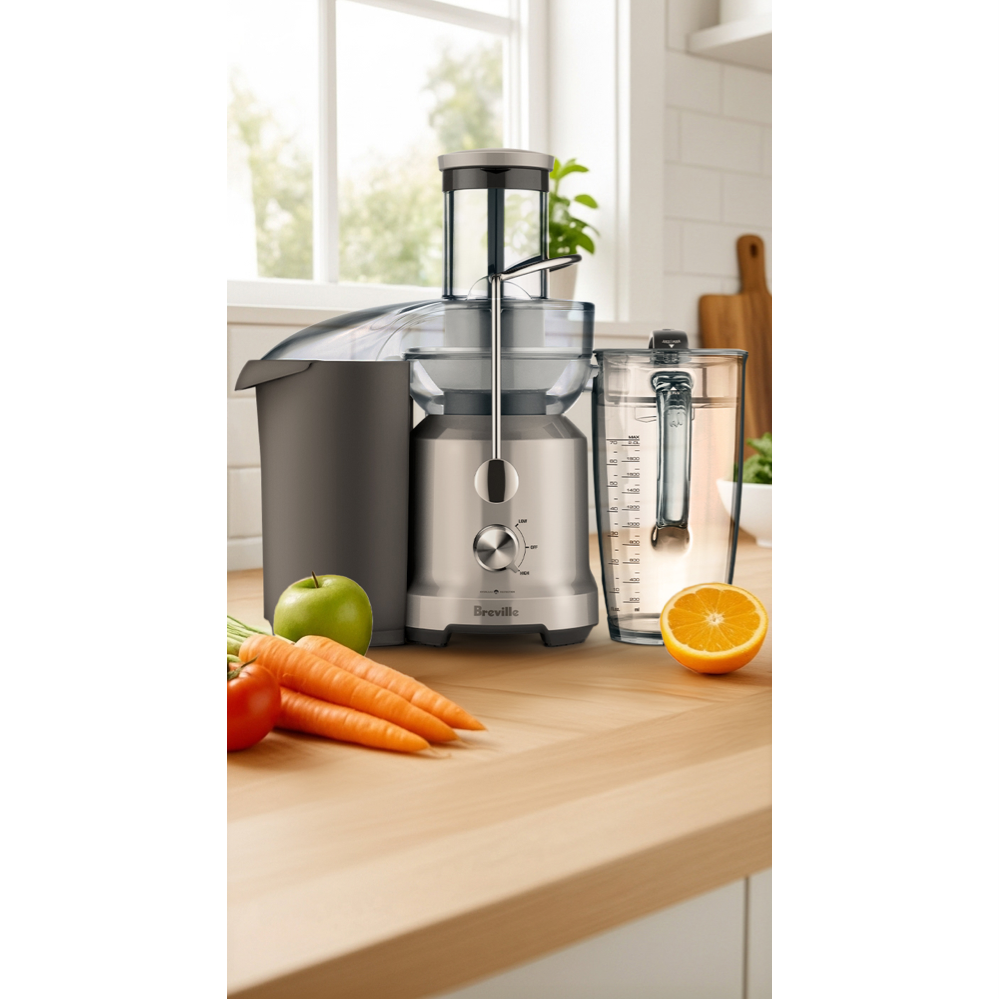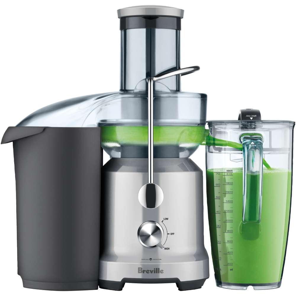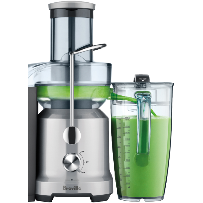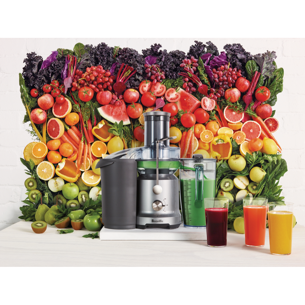 Make fresh healthy juice with The Juice Fountain Cold featuring Cold Spin Technology that minimizes temperature increase as juice flows through the stainless steel cutting disc and Italian-made mesh filter. The extra-wide 75mm chute lets you juice whole fruits and vegetables without pre-cutting saving you valuable prep time. With two speed settings and powerful 1250W motor you can easily process both soft and hard produce while the interlocking safety arm prevents operation unless the cover is securely locked. Enjoy your creations with the included 2-litre juice jug or use the detachable spout to juice directly into a glass. Comes with a 1-year warranty. Model BJE430SIL.