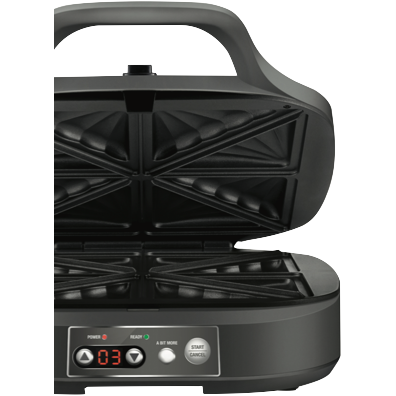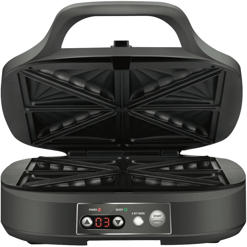 Bring the cafe experience into your own kitchen with the Breville the Power Toastie 4 Slice Toastie Maker. This jaffle maker features a sleek black stainless steel construction and 2000W of power for fast heating and crispy results. With its 4 slice capacity digital LED countdown timer and scissor action seal and cut you can easily create restaurant-quality toasties at home. The warm up and ready indicator lights let you know when it's time to add your ingredients. Simply layer your choice of bread cheese meats and veggies inside then lower the lid and let the non-stick plates evenly toast both sides to melted gooey perfection. Thanks to the a bit more button you can add extra time if your filling needs a little longer. And when you're done cooking the convenient cord wrap underneath makes storage a breeze. Bring cafe-style toasties home with the Breville Power Toastie 4 Slice Toastie Maker. The manufacturer's part number for this product is LTS425GRY. Check it out today!