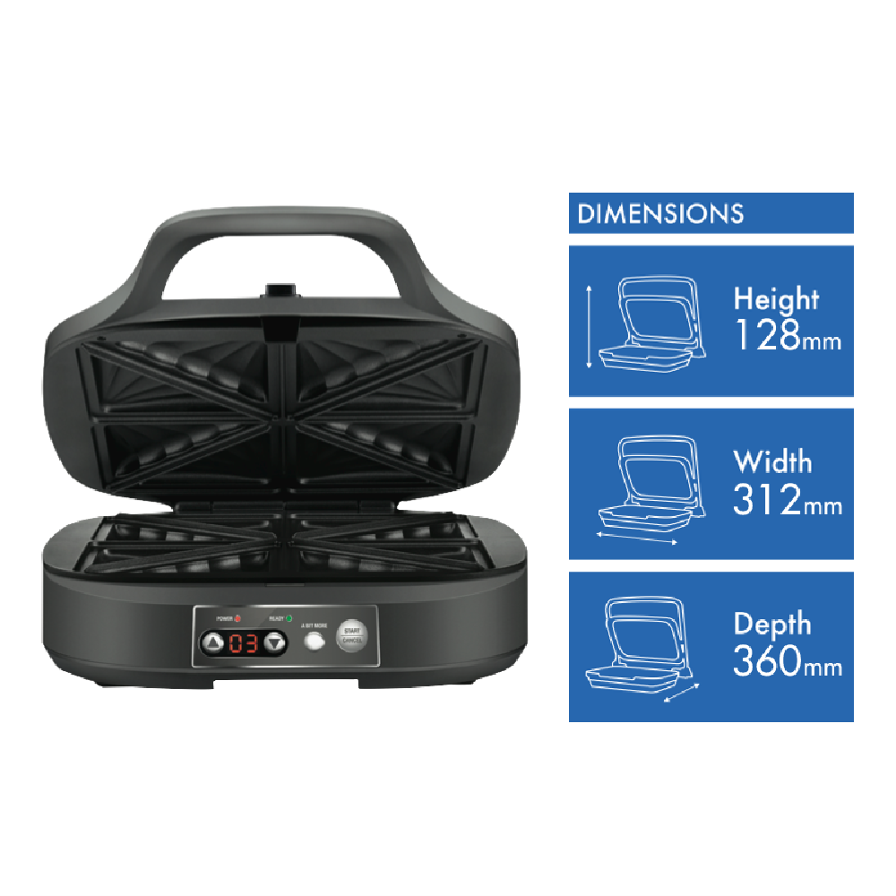 • Jaffle maker with 4 slice capacity and 2000 Watt power