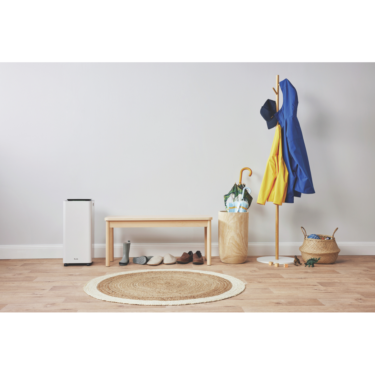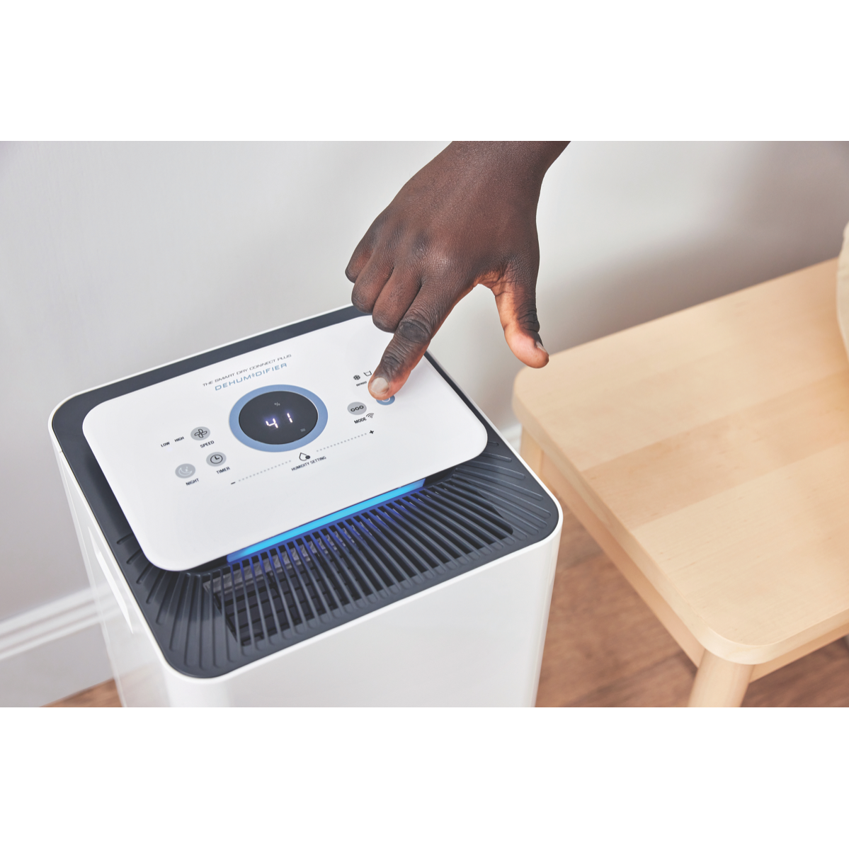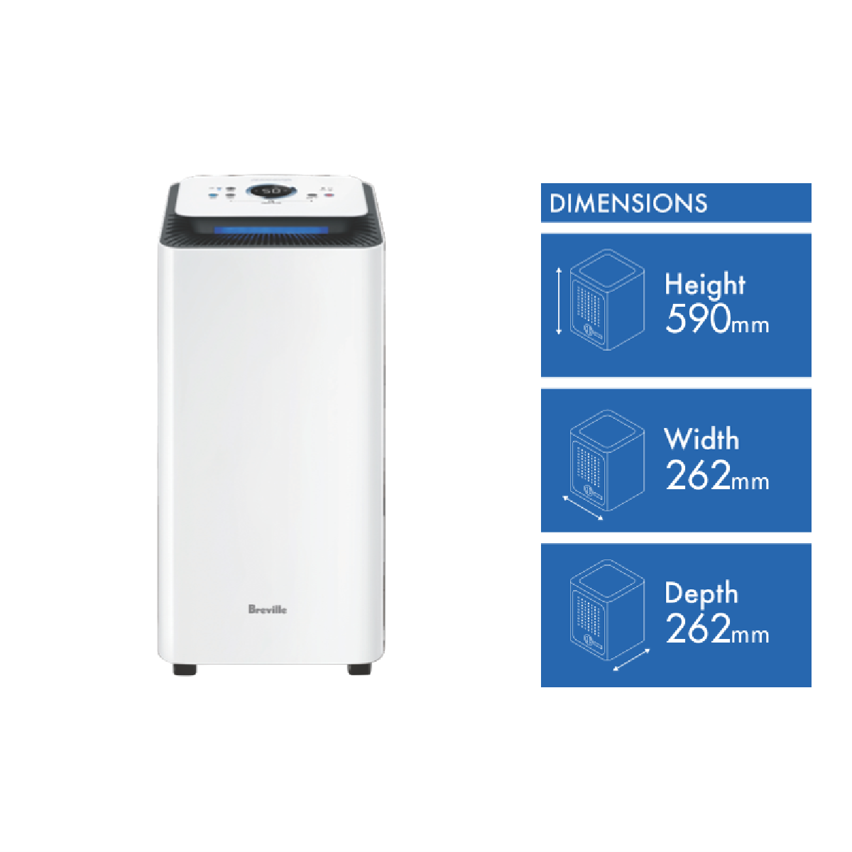Control humidity with precision and convenience using the Breville The Smart Dry Plus Dehumidifier. This white dehumidifier features Breville's Sensair System to automatically monitor humidity levels and adjust accordingly maintaining your desired setting between 30 and 80 percent. With Wi-Fi connectivity you can control humidity via the Breville Home Connect app and even by voice using Amazon Alexa or Google Home. The 3.5 liter tank capacity and auto mode allow continuous operation without constant emptying. Equipped with a 350 watt motor and coverage for rooms up to 50 square meters this energy efficient appliance protects your home from dampness and musty odors. Additional features like an LED humidity display laundry mode timer and integrated air purification with a 2 stage filtration system including carbon filter make dehumidification simple. By preventing moisture damage and inhibiting allergen growth the Smart Dry Plus safeguards your health and home while maximizing comfort. With a sleek compact build 2 year warranty and the manufacturer's part number LAD308WHT this is the smart solution for whole-home humidity control.