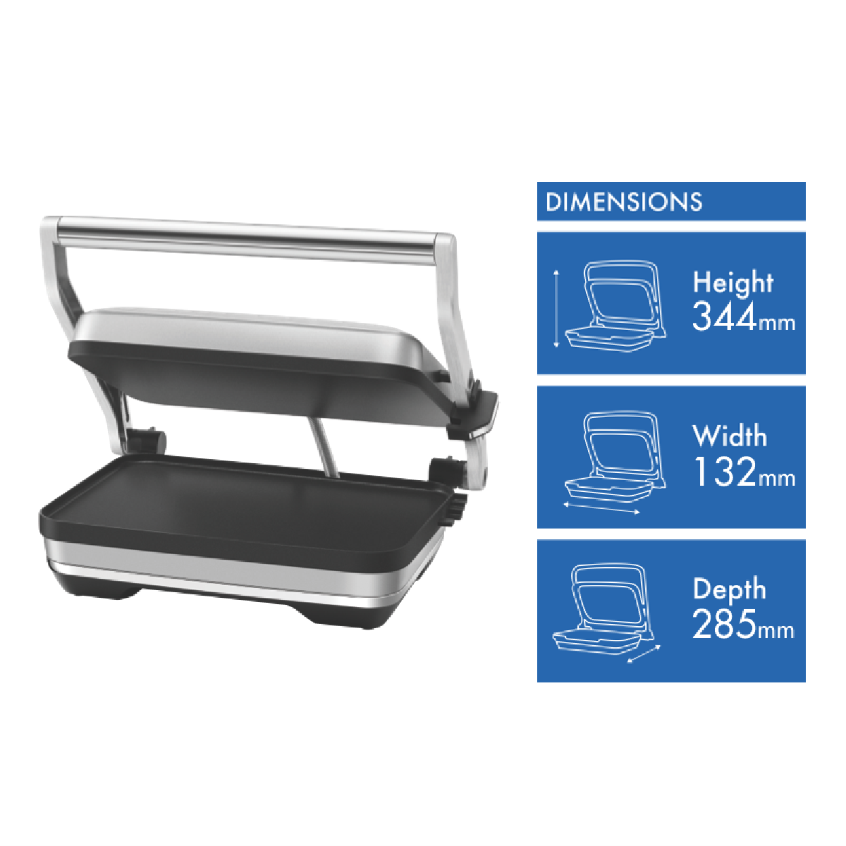 • Extra-wide cooking plates and floating hinge for versatility