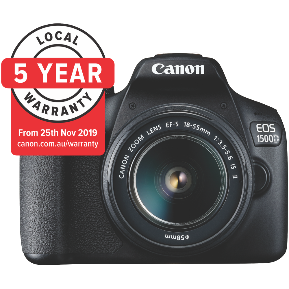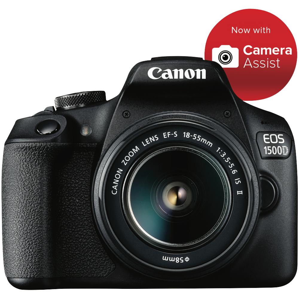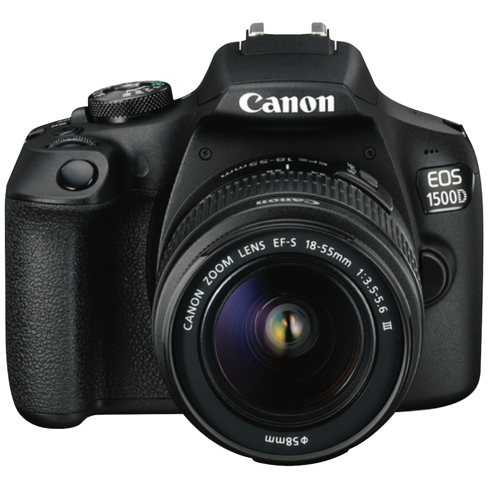 Capture life's special moments with the Canon EOS 1500D. This user-friendly DSLR camera packs a powerful 24.1 megapixel CMOS sensor to deliver stunning high resolution images. The EFS 18-55mm f/3.5-5.6 III lens offers versatile zoom range to suit portraits landscapes and daily photography. An optical viewfinder provides an authentic photography experience while Live View lets you see results on the 2.7 LCD screen. Shoot HD 1080p videos utilize manual exposure modes and explore your creativity with access to the expansive EF lens lineup. Weighing just 475g the 1500D's compact and lightweight body is comfortable for all-day shooting. Share photos and videos via built-in Wi-Fi and NFC connectivity. Covered by Canon's 5 year warranty the EOS 1500D brings sophisticated imaging within reach. The manufacturer's part number for this product is 1500DKB. Seize the moment with the Canon 1500D today.