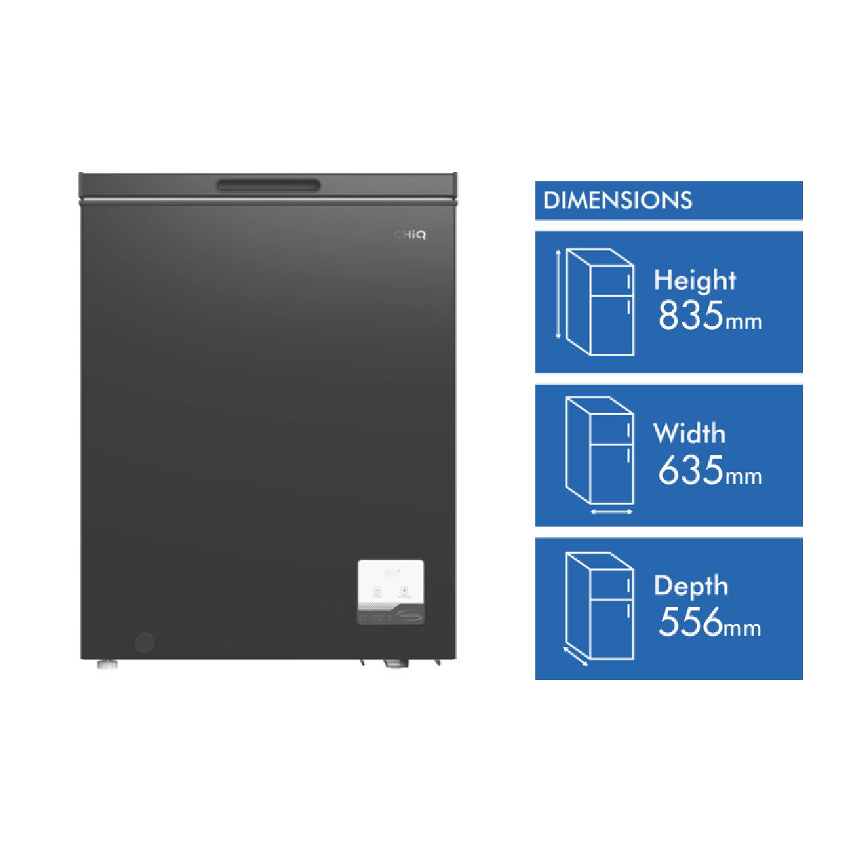Step into a world of cold storage convenience with the CHiQ 142L Hybrid Chest Freezer. This chest freezer's generous 142 litre capacity provides ample space to stock up on frozen foods. The manual defrost functionality allows you to manually defrost the freezer when needed while the top opening door enables easy access to your frozen items. At 635mm wide 835mm high and 556mm deep this chest freezer fits well in most spaces. The interior LED light illuminates the contents making it easy to find what you need. The sliding removable basket and wire mesh partition help you organise foods neatly. Keep little hands out with the handy child lock feature. Exclusive to The Good Guys this freezer is built to last with its durable construction. The CHiQ chest freezer performs efficiently too boasting a 5.5 star energy rating for money savings. Maintain the perfect temperature for your frozen goods with the electronic control and inverter system. Bring convenient cold storage to your home with the CHiQ 142L Hybrid Chest Freezer. The manufacturer's part number for this product is CCF141BE.