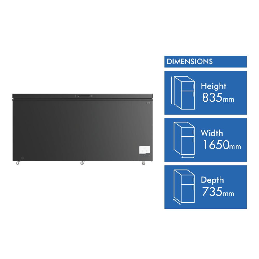 With its spacious 500 litre capacity the CHiQ 500L Hybrid Chest Freezer offers an abundance of storage for your frozen goods. This chest freezer features a hybrid cooling system that allows you to switch between freezer and fridge modes as needed. The inverter compressor ensures efficient low-noise operation while keeping contents consistently frozen. Interior LED lighting illuminates the contents and three sliding baskets provide organization. The electronic control panel allows easy temperature adjustments while the child lock provides added safety and peace of mind. With a stylish black finish this freezer looks great in any home. The CHiQ chest freezer comes with a 3 year warranty plus an additional 7 years on compressor parts for your convenience. Don't miss out on this exclusive freezer - see it in store at The Good Guys today!