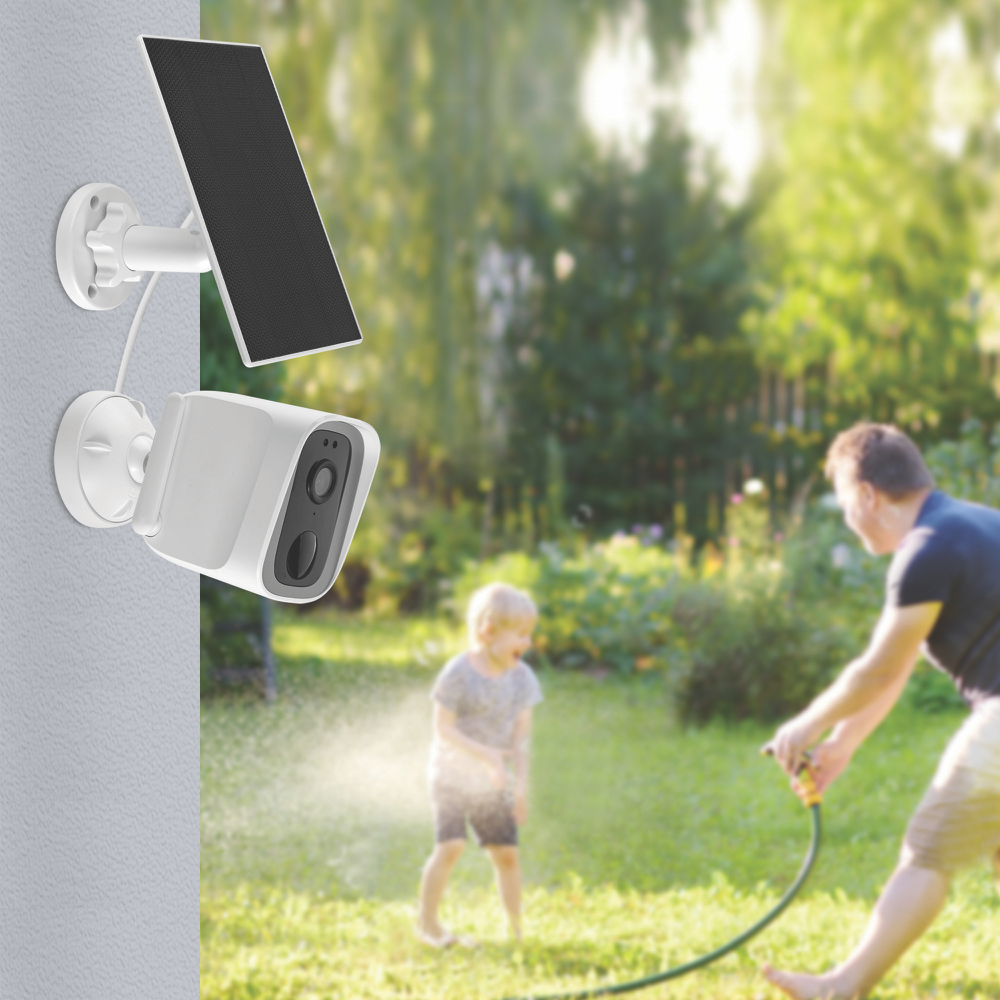 Harness the power of the sun to keep your Connect SmartHome outdoor security cameras charged with the Connect SmartHome 5W Solar Panel. This adjustable white solar panel works seamlessly with all Connect SmartHome battery-powered outdoor cameras allowing you to mount it on a wall or roof to continuously top up your camera battery using natural sunlight. With an IP65 water resistant rating this 287g solar panel stands up to the elements while its adjustable angle positions it perfectly to maximize solar energy collection. Measuring 175mm in height 165mm in width and 20mm in depth the panel's stand enables convenient wall mounting for optimal placement. Harness free solar energy to keep your Connect SmartHome outdoor security cameras powered 24/7 with this innovative solar panel solution. The manufacturer's part number for this product is CSH-ODSLR-5W. Check out the Connect SmartHome 5W Solar Panel to keep your outdoor cameras charged without any wires.