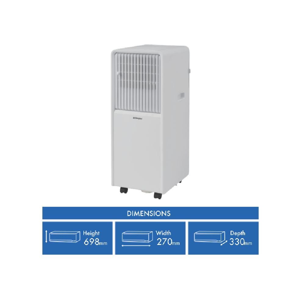 Stay cool with this eco-friendly 3.5kW portable air conditioner that's made from 25% recycled materials. The optic white unit offers powerful cooling and dehumidification removing up to 1.2L of moisture per hour to keep your space comfortable. Control it easily with the touch controls or use the convenient 24-hour timer to set your cooling schedule. Even better it's smart home compatible with Wi-Fi control through the GlenDimplex Connect app. The package includes everything you need to get started - a window kit and remote control. Backed by a 2-year warranty. Model DCP33EB.