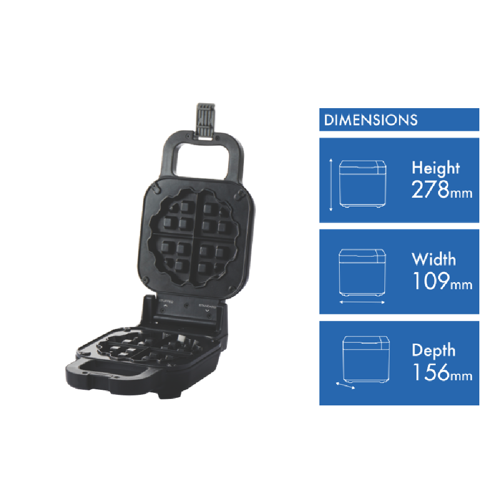 • Non-stick cooking plates for easy waffle removal