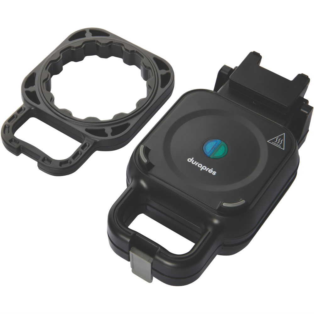 Want to whip up delicious waffles without the hassle? The Durapres Fill n Flip Waffle Press makes it easy. This compact 800-watt appliance cooks crispy golden waffles in minutes. Its non-stick plates ensure your waffles slide right out and clean up is a breeze. The cool touch handles keep your hands safe while you cook. It even comes with a handy waffle ring to help you pour just the right amount of batter. At just 1.7kg this black waffle maker won't take up much space in your kitchen. And with a 2-year warranty you can enjoy homemade waffles worry-free. The Durapres Fill n Flip Waffle Press (model DW450) brings the cafe experience home.