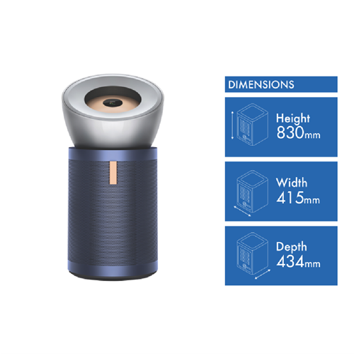 Pollution can be constantly released across a large space. So long-range projection matters. Our latest purifier uses cone aerodynamics to deliver powerful long-range projection circulating air and driving distant pollutants back through sealed filters. For whole-room purification with HEPA H13 filtration even in large spaces.41. The ability of purifying a large room up to 100m2 (10m*10m) proven from a Computational Fluid Dynamics (CFD) modelling with the purifier placed in a corner of the room running at the maximum flow and horizontal projection reaching 10 metres to fully mix the room. The projection distance was measured from internal flow reach testing under the maximum directional airflow. The actual performance in real life condition may vary.2. Tested for filtration efficiency at 0.1 microns (EN1822 ISO29364). 3. Third party full machine testing based on GB/T 18801-2022 formaldehyde cumulative clean mass testing with continuous injection until plateau of formaldehyde CADR is achieved. Results may vary in practice.4. Based on Dyson purifier s HEPA filtration performance challenged against ISO 29463 its ability of purifying a large room up to 100m2 (10m*10m) was proven from a Computational Fluid Dynamics (CFD) modelling by Dyson with the purifier placed in a corner of the room running at the maximum flow and horizontal projection reaching 10 metres to fully mix the room. The projection distance of 10 metres was measured from internal flow and room humidity 60%. The actual performance in real life condition may vary depending on air inflow and outflow.
