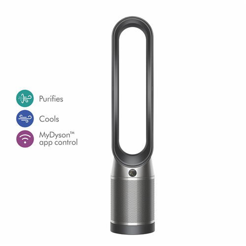 The Dyson TP07 Pure Cool Tower Fan (379532-01) in Black/Nickel captures dust and allergens removing up to 99.95% of particles as small as 0.1 microns(1). Automatically detects airborne particles and gases then diagnoses and reports them in real time. Air Multiplier technology generates the circulation power to purify the whole room(2). Sealed airflow and filtration system. So our whole machine not just the filter meets HEPA H13 (3) standard. What goes inside stays inside. Acoustically engineered to be 20% quieter than the previous model(4). Control and monitor air quality from anywhere using the Dyson Link app(5). Control it hands-free with compatible voice services(6). Disclaimers: (1) Tested for filtration efficiency at 0.1 microns (EN1822). (2) In maximum setting. Tested for air projection purification coverage in a 81m3 room. (3) Particle challenge by DEHS oil specified in EN1822 within a chamber specified in ASTM F3150. Tested in Max Mode at IBR US for whole machine efficiency above 99.95%. (4) Dyson Pure Cool TP04. (5) Requires device to run app Wi-Fi or mobile data Bluetooth 4.0 support and iOS version 10 or Android version 5 (or above). Standard data and messaging rates may apply. (6) Refer to the Dyson Link app for compatible voice services. In warmer weather a powerful stream of purified airflow can cool you down.