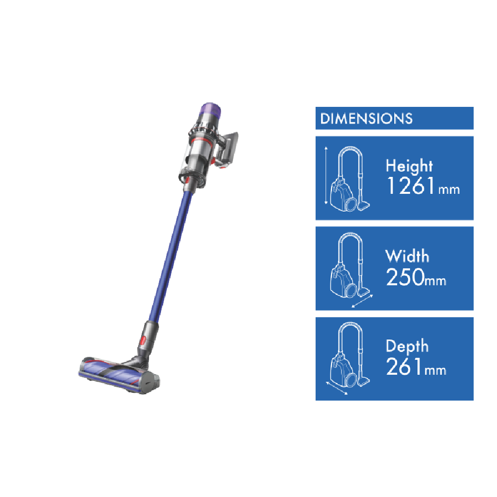Cordless cleaning made easier with fade-free battery power and a battery saving trigger. And real time reporting on the LCD screen to give you control of your clean. Powered by the Dyson Hyperdymium(TM) motor spins up to 125000rpm creating powerful Dyson suction(1). Up to 60 minutes of fade free power(2) Monitors system performance 8000 times a second then reports in real time on the LCD screen. Changes to a handheld vacuum cleaner and back again in just one click. Three cleaning modes optimised for a variety of tasks. The right balance of power and run time where you need it. Dyson's fully sealed six layer filtration system traps 99.99% of particles as small as 0.3 microns(3) Disclaimers: (1)Compared to Dyson V8 cordless vacuum in MAX mode at the inlet. (2)In Eco mode on hard floors (3)Filtration tested against ASTM F3150 tested in Boost mode by independent third-party SGS-IBR Laboratories US in 2020