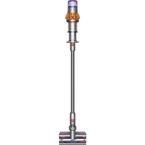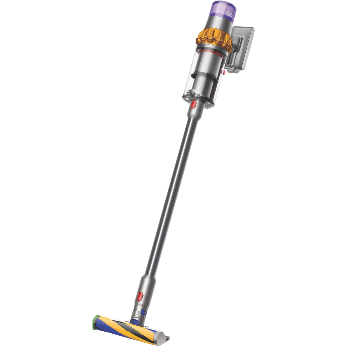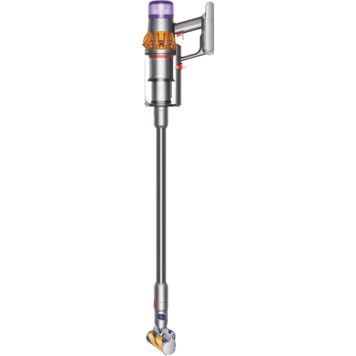 The Dyson V15 Detect Absolute Cordless Vacuum (447955-01) has a Fluffy Optic(TM) cleaner head that reveals 2 times more microscopic particles(1) a piezo sensor continuously sizes and counts dust particles automatically increasing suction power when needed(3). LCD screen shows scientific proof of a deep clean the LCD screen shows what's been sucked up displaying in real time(4). Powered by a Dyson Hyerdymium(TM) motor spinning at up to 125000rpm generating powerful Dyson suction(2). With up to 60 minutes of fade-free power(6) it provides powerful suction to clean your home and car. Dyson DLS(TM) technology inside the Digital Motorbar(TM) cleaner head monitors brush bar resistance 360 times a second intelligently adapting power across different floor tyoes automatically with no need to change cleaner heads(5) Quickly transforms to a handheld and back again in just one click. Three cleaning modes optimised for a variety of tasks The right balance of power and run time where you need it. The fully sealed filtration system traps 99.99% if particles as small as 0.3 microns(7). The 'point and shoot' mechanism hygienically ejects dust and debris into your bin in one action so there's no need to touch the dirt. Dyson's power-optimising technology and battery-saving trigger help maximise run-time only using power when you need it. 14 cyclones generate forces of 100000g to fling dust into the bin without clogging the filter so there's no loss of suction. Designed to absorb vibrations and dampen sound to keep sound levels down Disclaimers: (1) Compared to the original Dyson Laser Slim Fluffy(TM) cleaner head. Effectiveness influenced by ambient light conditions debris type and surface.(2)Suction tested to IEC 62885-4 CL5.8 and CL5.9 loaded to bin full in Boost mode(3)Quantity and size of dust displayed on screen varies depending on usage. Automatic suction adaptation only occurs in auto mode. (4)Quantity and size of dust displayed on screen varies depending on usage. Examples shown may occur within one or more displayed size range(5)In Auto mode. (6)In Eco mode on hard floors. (7)Tested against ASTM F1977-04 (particles sized 0.3-0.5 microns) tested in Boost mode. (8)Pick up tested to IEC 62885-4 Ed1.0 2020 Cl5.5 in boost mode. De-tangling capability based on internal Dyson test method.(9)Additional battery available to buy separately.