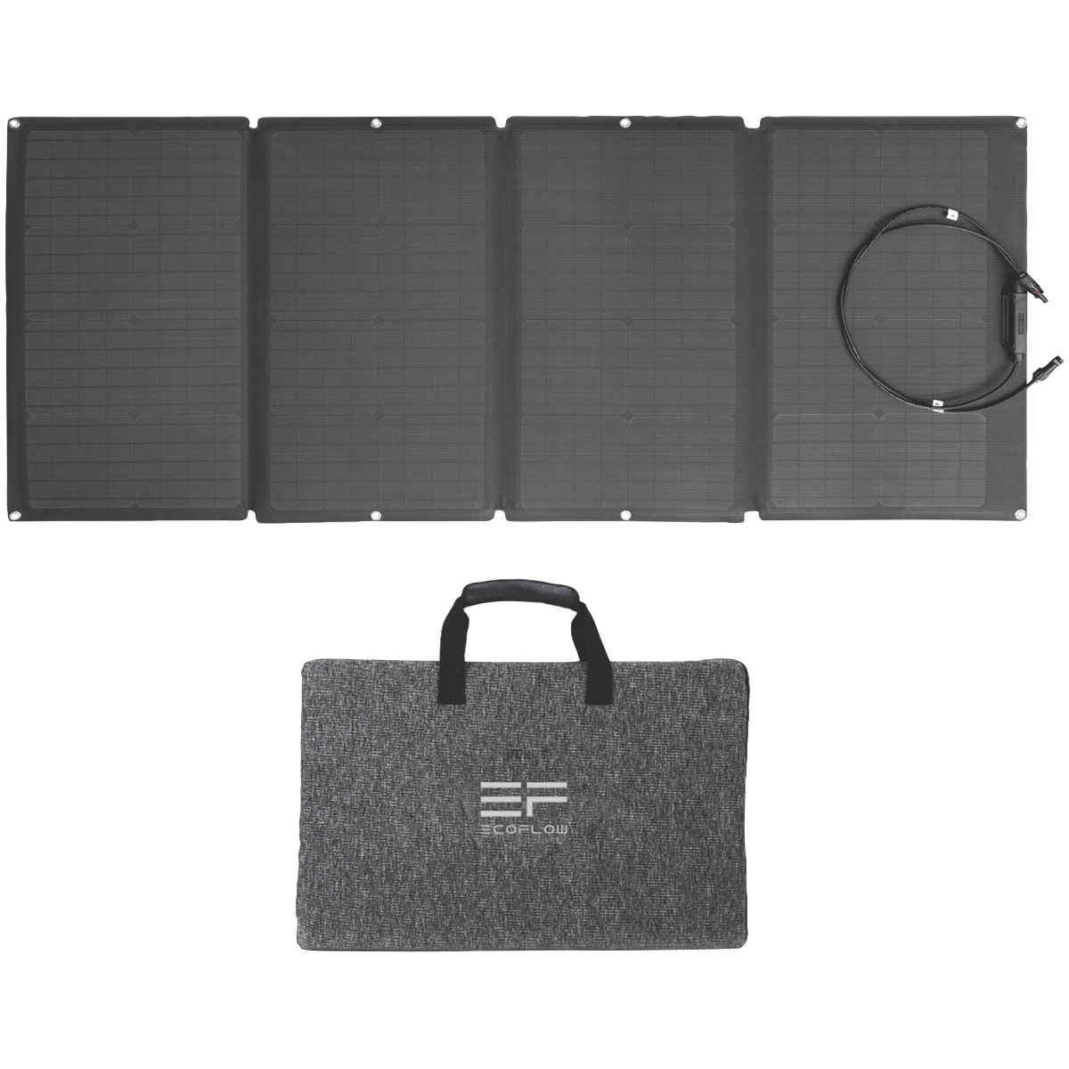 Portable & Self-supportableCarry this 15-pound panel in a case that doubles as a stand giving you the best angle for solar charging.So Much More Sun32 premium monocrystalline silicon cells provide a high conversion efficiency of 22%. Recharge even faster by chaining multiple panels in a series or in parallel.Waterproof & DurableDesigned to withstand your adventurous lifestyle this seamless panel is submersible up to a meter for 30 minutes and an ETFE film protects against ultraviolet rays.Rated Power 160 WattsUnfolded : 61.8 x 26.8 x 1.0 inEfficiency : 21-22%