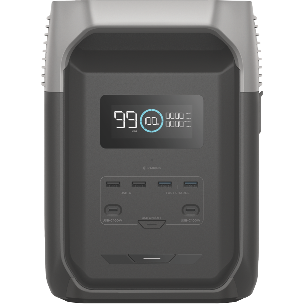 Power up your adventures with the Delta 3 Power Station delivering 1500W of portable power wherever you need it. This black and grey unit connects via wired connections making it easy to keep your devices running when you're away from standard power outlets. Despite its impressive power output it weighs just 16.5kg and has a compact footprint of 280mm wide by 400mm high and 210mm deep so you can transport it to wherever power is needed. Backed by a 5-year manufacturer's warranty for peace of mind. Model EFDELTA3-1500.