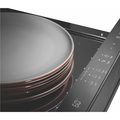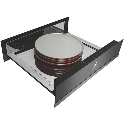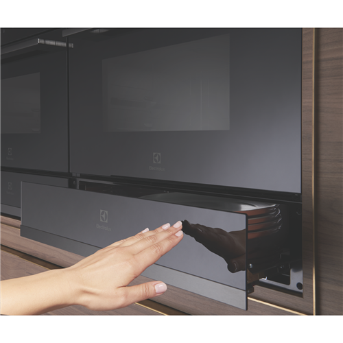 Keep cooked food warm before it's ready to be served with this Electrolux 14cm Built-in Warming Drawer EWD1402DSE. With three Quick Set functions to choose from you can select 'Keep Warm' so cooked dinners stay warm 'Low' to get cups and glasses warmed-up on cooler days or 'Med' for toasty warm serving dishes and plates to help keep served food hotter for longer. Plus it has adjustable temperature options between 40 and 80 degrees Celsius so you can set the heat you want for each function. It has electronic touch controls and a push-to-open soft-closing drawer that can also be fully extended for ease of use when loading and unloading items from the warming drawer. It has a timer default operation of one hour however this can be easily altered at the 'Time' touch control. The maximum load bearing capacity of the drawer is 25 kg. Under the maximum load bearing capacity the drawer should be opened or closed carefully.