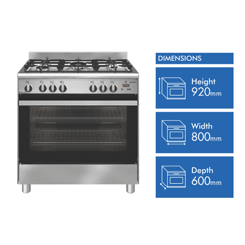 Cook up a storm while saving your electric power bill by using the Emilia 80cm Stainless Steel Gas Upright Cooker. It's five burner design creates a large variety of cooking related options when creating your favourite meals. The 120L interior capacity provides a wide amount of space to fit and cook different types of dishes. Use your oven off only solar power and off the grid with electricity consumption being at 1% of other corresponding cookers; this oven can have an LPG conversion and can be operated during blackouts. For safety reasons if the burner flame extinguishes while cooking the gas flow stops preventing any possible accidents from occurring. Set a reminder of your cooking duration with the preinstalled timer and digital clock that always displays the time of day.