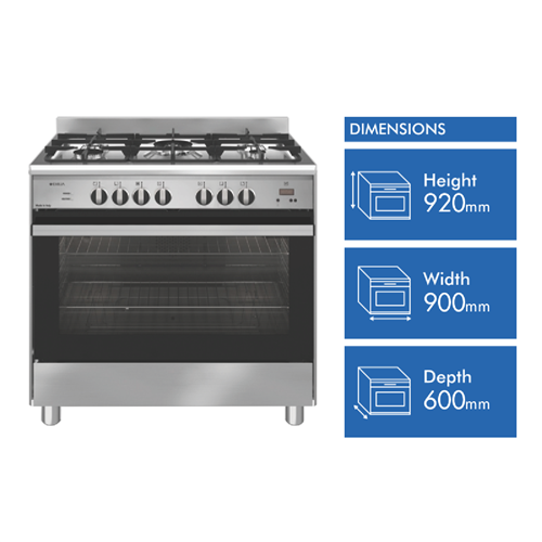 • Natural or LPG gas oven and gas cooktop 90cm 140 Litre