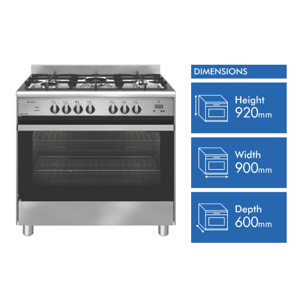 Emilia 90cm Stainless Steel Dual Fuel Upright Cooker