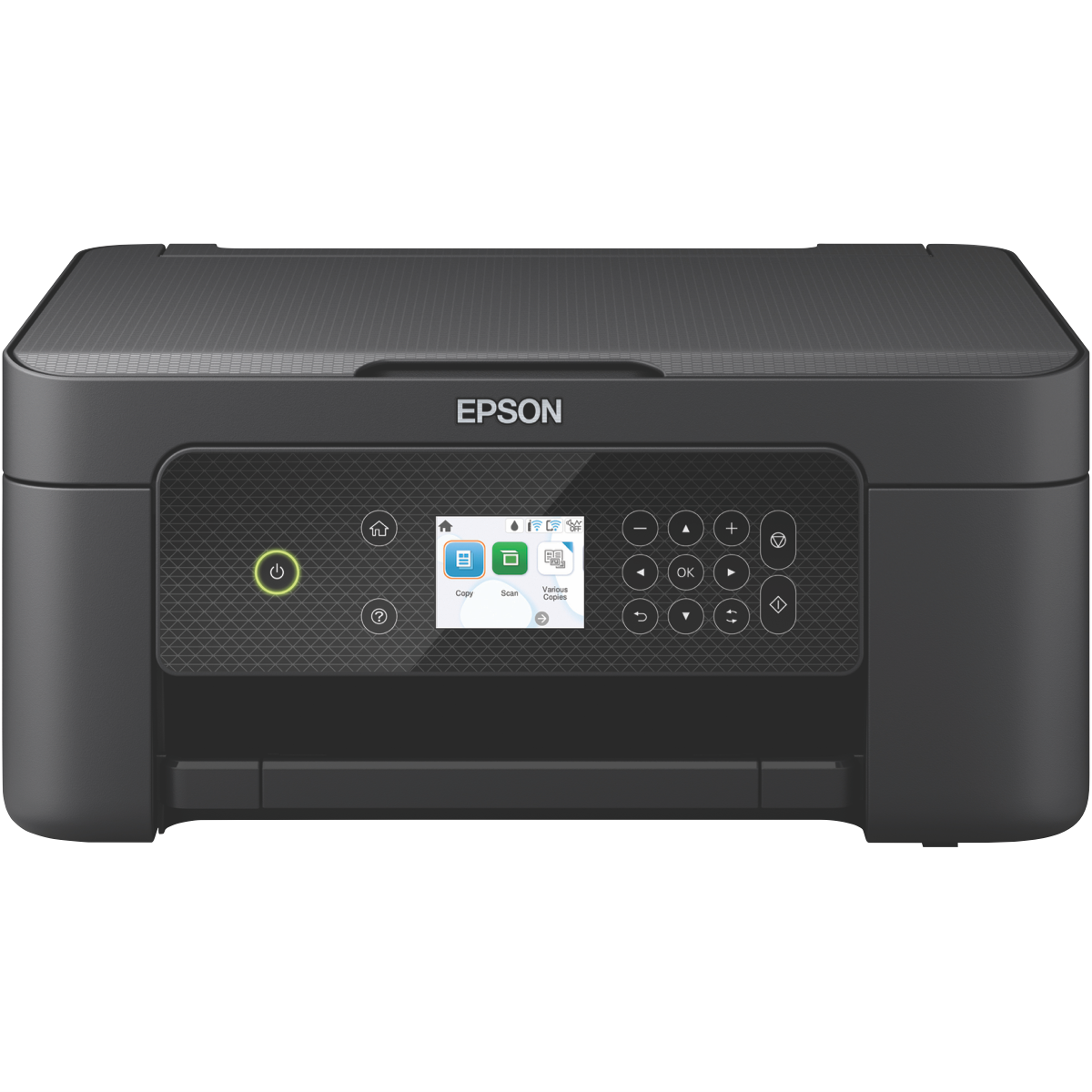 Add efficiency to your daily routine with the Epson Expression Home Compact 3-in-1 Printer XP-4200. This versatile inkjet printer delivers lab-quality photos and laser-sharp text while taking up minimal space. With built-in wireless connectivity you can print from smartphones and tablets with ease. It produces crisp black text at speeds up to 10.3ppm and vivid color graphics at 5.8ppm. The high 5760 x 1440dpi resolution ensures professional quality output. Scan and copy multipage documents at a swift 1200 x 2400dpi. The 2.4 LCD screen allows intuitive control over print jobs. Conveniently print on the go using AirPrint Google Cloud Print or the Epson Smart Panel app. Reduce waste with automatic double-sided printing. The 100-sheet tray capacity and compact 375mm x 300mm footprint help it fit neatly into any home office or dorm room. Add an extra creative touch with customizable CD/DVD printing. Reliable and affordable the XP-4200 helps streamline both work and play. The manufacturer's part number for this product is XP-4200. Bring home the versatility of this 3-in-1 today.
