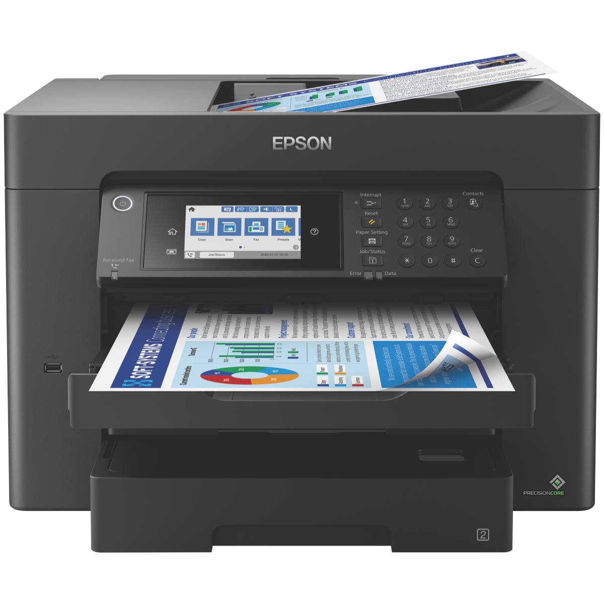 Print scan copy and fax with ease using the Epson WorkForce Multifunction Printer WF-7845. This versatile all-in-one printer delivers professional quality prints at speeds up to 25ppm in monochrome and 12ppm in colour. Built with a high resolution 4800 x 2400 dpi it produces sharp text and vivid graphics on a wide range of media up to A3+ size. Wireless connectivity allows printing from smartphones tablets and laptops while auto 2-sided printing saves on paper. The auto document feeder scans stacks of documents fast. With individual inks you replace only the colour that runs out. Designed for busy home offices and small businesses the WorkForce Pro WF-7845 multifunction delivers functionality performance and reliability. The manufacturer's part number for this product is WF-7845. For further product details and pricing contact our customer service team today.